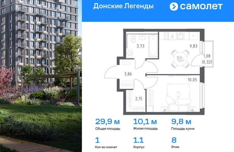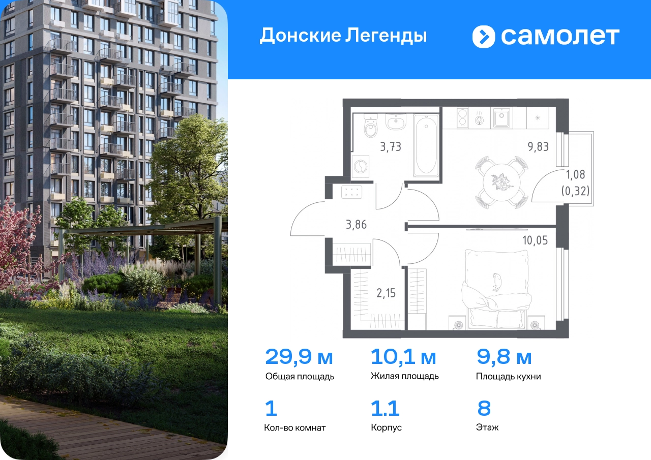 Предлагается 1-комнатная квартира комфорт-класса 29,94 кв.м в корпусе 1.1 на 8 этаже, в ЖК «Донские Легенды» Квартира с предчистовой отделкой. Доступность дополнительных опций уточняйте у застройщика. Приобрести квартиру возможно по специальным акциям от застройщика, с текущими условиями акций можно ознакомиться в блоке «Акций». Цена динамическая и может отличаться, уточняйте актуальность у застройщика. Чувствовать гордость, когда любимая команда забивает гол, и с удовольствием спешить на тренировку по мини-футболу или теннису — так выглядит атмосфера в «Квартале Чехова» в Ленинском районе. Здесь каждый день станет ценным экспонатом в вашей коллекции впечатлений. Проект расположен рядом с Восточным шоссе и улицей Пойменной, всего в 10 минутах на машине от центра города. За 3 минуты вы доберетесь до Ворошиловского моста, а за 4 — до Темерницкого. Если не хотите ехать на машине, рядом остановки автобусов. Поблизости находится спортивный комплекс «Гребной канал Дон», а стадион «Ростов Арена» ждет любителей футбола. Прогуляться по благоустроенной набережной, повеселиться в аквапарке и подкрепиться мороженым можно в Левобережном парке — до него 5 минут на такси. Утро начнется с прогулки с малышом до одного из 3 детских садов. Рядом есть школа для ребят постарше, детская школа искусств, центр культурного развития и ФОК. В квартале откроются поликлиника со станцией скорой помощи и 2 торговых центра. Архитектура квартала сочетает современность и изящество. Элегантные французские балконы и панорамные окна позволят наслаждаться великолепными пейзажами. Во дворе дети играют на площадках, а взрослые занимаются спортом. У жителей будет собственный ипподром для соревнований по конкуру. А еще подземный и многоуровневые паркинги на 7,5 тысячи машино-мест. Входы в подъезды расположены на уровне земли, что удобно для родителей с колясками и путешественников. Для будущих жителей — квартиры без отделки. Можно реализовать любые дизайнерские идеи в своем новом доме.#yan19-2r1777134#О застройщике