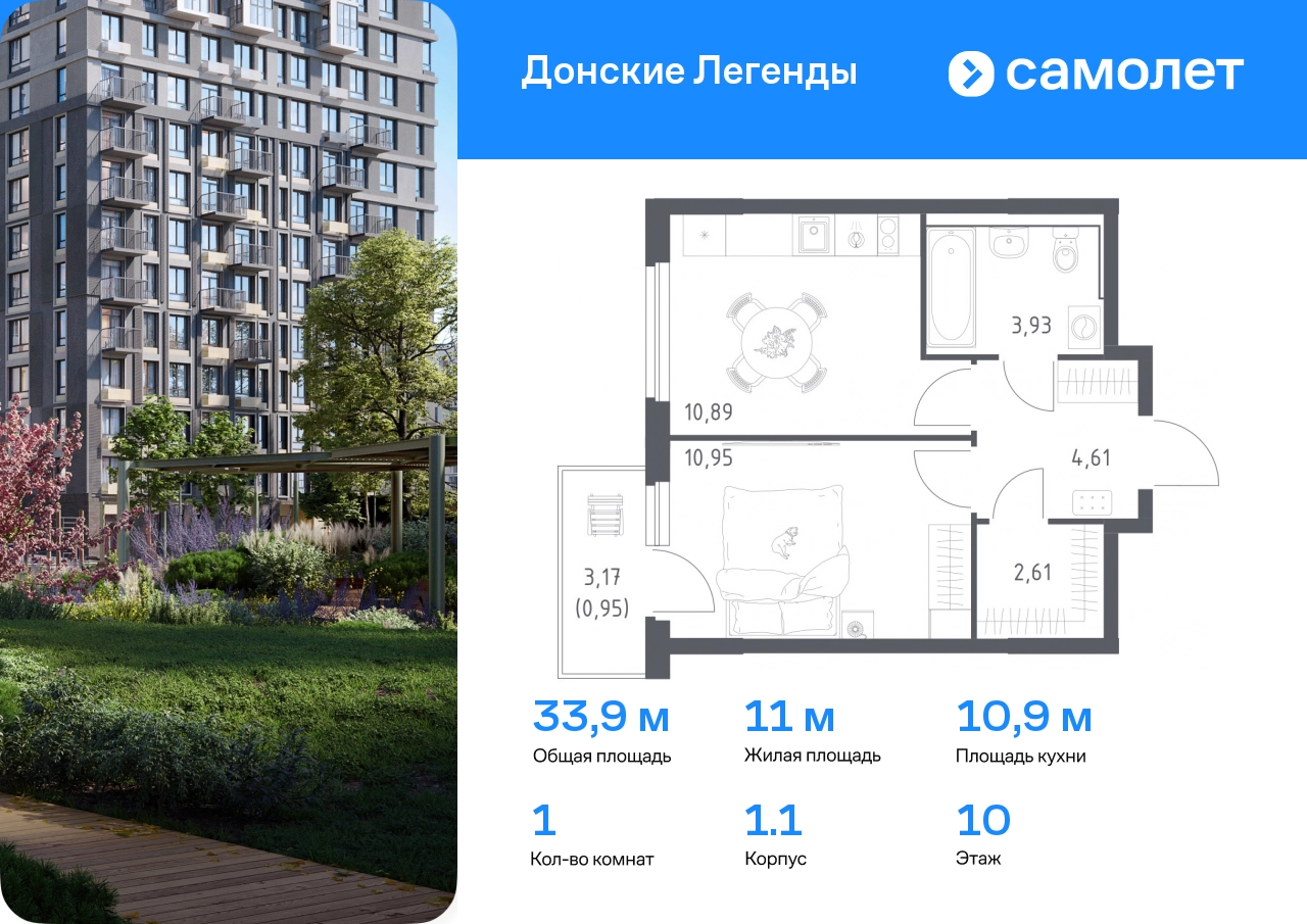 Строим кварталы для жизни с заботой о будущем. Предлагается 1-комнатная квартира комфорт-класса 33,94 кв.м в корпусе 1.1 на 10 этаже, в ЖК «Донские Легенды» Квартира с предчистовой отделкой. Доступность дополнительных опций уточняйте у застройщика. Приобрести квартиру возможно по специальным акциям от застройщика, с текущими условиями акций можно ознакомиться в блоке «Акций». Цена динамическая и может отличаться, уточняйте актуальность у застройщика. Чувствовать гордость, когда любимая команда забивает гол, и с удовольствием спешить на тренировку по мини-футболу или теннису — так выглядит атмосфера в «Квартале Чехова» в Ленинском районе. Здесь каждый день станет ценным экспонатом в вашей коллекции впечатлений. Проект расположен рядом с Восточным шоссе и улицей Пойменной, всего в 10 минутах на машине от центра города. За 3 минуты вы доберетесь до Ворошиловского моста, а за 4 — до Темерницкого. Если не хотите ехать на машине, рядом остановки автобусов. Поблизости находится спортивный комплекс «Гребной канал Дон», а стадион «Ростов Арена» ждет любителей футбола. Прогуляться по благоустроенной набережной, повеселиться в аквапарке и подкрепиться мороженым можно в Левобережном парке — до него 5 минут на такси. Утро начнется с прогулки с малышом до одного из 3 детских садов. Рядом есть школа для ребят постарше, детская школа искусств, центр культурного развития и ФОК. В квартале откроются поликлиника со станцией скорой помощи и 2 торговых центра. Архитектура квартала сочетает современность и изящество. Элегантные французские балконы и панорамные окна позволят наслаждаться великолепными пейзажами. Во дворе дети играют на площадках, а взрослые занимаются спортом. У жителей будет собственный ипподром для соревнований по конкуру. А еще подземный и многоуровневые паркинги на 7,5 тысячи машино-мест. Входы в подъезды расположены на уровне земли, что удобно для родителей с колясками и путешественников. Для будущих жителей — квартиры без отделки. Можно реализовать любые дизайнерские идеи в своем новом доме.#yan19-2r1777141#О застройщике
