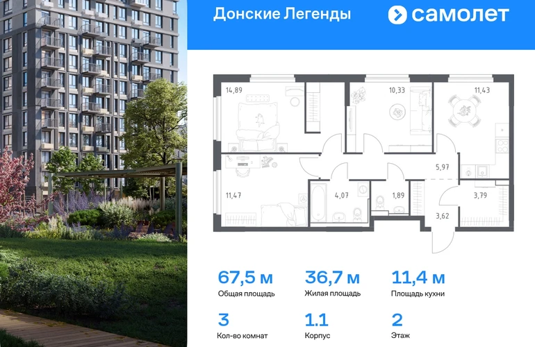 Строим кварталы для жизни с заботой о будущем. Предлагается 3-комнатная квартира комфорт-класса 67,46 кв.м в корпусе 1.1 на 2 этаже, в ЖК «Донские Легенды» Квартира с предчистовой отделкой. Доступность дополнительных опций уточняйте у застройщика. Приобрести квартиру возможно по специальным акциям от застройщика, с текущими условиями акций можно ознакомиться в блоке «Акций». Цена динамическая и может отличаться, уточняйте актуальность у застройщика. Чувствовать гордость, когда любимая команда забивает гол, и с удовольствием спешить на тренировку по мини-футболу или теннису — так выглядит атмосфера в «Квартале Чехова» в Ленинском районе. Здесь каждый день станет ценным экспонатом в вашей коллекции впечатлений. Проект расположен рядом с Восточным шоссе и улицей Пойменной, всего в 10 минутах на машине от центра города. За 3 минуты вы доберетесь до Ворошиловского моста, а за 4 — до Темерницкого. Если не хотите ехать на машине, рядом остановки автобусов. Поблизости находится спортивный комплекс «Гребной канал Дон», а стадион «Ростов Арена» ждет любителей футбола. Прогуляться по благоустроенной набережной, повеселиться в аквапарке и подкрепиться мороженым можно в Левобережном парке — до него 5 минут на такси. Утро начнется с прогулки с малышом до одного из 3 детских садов. Рядом есть школа для ребят постарше, детская школа искусств, центр культурного развития и ФОК. В квартале откроются поликлиника со станцией скорой помощи и 2 торговых центра. Архитектура квартала сочетает современность и изящество. Элегантные французские балконы и панорамные окна позволят наслаждаться великолепными пейзажами. Во дворе дети играют на площадках, а взрослые занимаются спортом. У жителей будет собственный ипподром для соревнований по конкуру. А еще подземный и многоуровневые паркинги на 7,5 тысячи машино-мест. Входы в подъезды расположены на уровне земли, что удобно для родителей с колясками и путешественников. Для будущих жителей — квартиры без отделки. Можно реализовать любые дизайнерские идеи в своем новом доме.#yan19-2r1777154#О застройщике