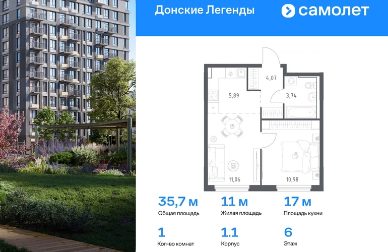 Строим кварталы для жизни с заботой о будущем. Предлагается 1-комнатная квартира комфорт-класса 35,74 кв.м в корпусе 1.1 на 6 этаже, в ЖК «Донские Легенды» Квартира с предчистовой отделкой. Доступность дополнительных опций уточняйте у застройщика. Приобрести квартиру возможно по специальным акциям от застройщика, с текущими условиями акций можно ознакомиться в блоке «Акций». Цена динамическая и может отличаться, уточняйте актуальность у застройщика. Чувствовать гордость, когда любимая команда забивает гол, и с удовольствием спешить на тренировку по мини-футболу или теннису — так выглядит атмосфера в «Квартале Чехова» в Ленинском районе. Здесь каждый день станет ценным экспонатом в вашей коллекции впечатлений. Проект расположен рядом с Восточным шоссе и улицей Пойменной, всего в 10 минутах на машине от центра города. За 3 минуты вы доберетесь до Ворошиловского моста, а за 4 — до Темерницкого. Если не хотите ехать на машине, рядом остановки автобусов. Поблизости находится спортивный комплекс «Гребной канал Дон», а стадион «Ростов Арена» ждет любителей футбола. Прогуляться по благоустроенной набережной, повеселиться в аквапарке и подкрепиться мороженым можно в Левобережном парке — до него 5 минут на такси. Утро начнется с прогулки с малышом до одного из 3 детских садов. Рядом есть школа для ребят постарше, детская школа искусств, центр культурного развития и ФОК. В квартале откроются поликлиника со станцией скорой помощи и 2 торговых центра. Архитектура квартала сочетает современность и изящество. Элегантные французские балконы и панорамные окна позволят наслаждаться великолепными пейзажами. Во дворе дети играют на площадках, а взрослые занимаются спортом. У жителей будет собственный ипподром для соревнований по конкуру. А еще подземный и многоуровневые паркинги на 7,5 тысячи машино-мест. Входы в подъезды расположены на уровне земли, что удобно для родителей с колясками и путешественников. Для будущих жителей — квартиры без отделки. Можно реализовать любые дизайнерские идеи в своем новом доме.#yan19-2r1777159#О застройщике