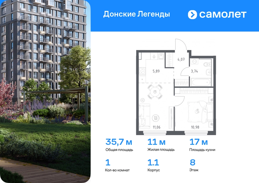 Строим кварталы для жизни с заботой о будущем. Предлагается 1-комнатная квартира комфорт-класса 35,74 кв.м в корпусе 1.1 на 8 этаже, в ЖК «Донские Легенды» Квартира с предчистовой отделкой. Доступность дополнительных опций уточняйте у застройщика. Приобрести квартиру возможно по специальным акциям от застройщика, с текущими условиями акций можно ознакомиться в блоке «Акций». Цена динамическая и может отличаться, уточняйте актуальность у застройщика. Чувствовать гордость, когда любимая команда забивает гол, и с удовольствием спешить на тренировку по мини-футболу или теннису — так выглядит атмосфера в «Квартале Чехова» в Ленинском районе. Здесь каждый день станет ценным экспонатом в вашей коллекции впечатлений. Проект расположен рядом с Восточным шоссе и улицей Пойменной, всего в 10 минутах на машине от центра города. За 3 минуты вы доберетесь до Ворошиловского моста, а за 4 — до Темерницкого. Если не хотите ехать на машине, рядом остановки автобусов. Поблизости находится спортивный комплекс «Гребной канал Дон», а стадион «Ростов Арена» ждет любителей футбола. Прогуляться по благоустроенной набережной, повеселиться в аквапарке и подкрепиться мороженым можно в Левобережном парке — до него 5 минут на такси. Утро начнется с прогулки с малышом до одного из 3 детских садов. Рядом есть школа для ребят постарше, детская школа искусств, центр культурного развития и ФОК. В квартале откроются поликлиника со станцией скорой помощи и 2 торговых центра. Архитектура квартала сочетает современность и изящество. Элегантные французские балконы и панорамные окна позволят наслаждаться великолепными пейзажами. Во дворе дети играют на площадках, а взрослые занимаются спортом. У жителей будет собственный ипподром для соревнований по конкуру. А еще подземный и многоуровневые паркинги на 7,5 тысячи машино-мест. Входы в подъезды расположены на уровне земли, что удобно для родителей с колясками и путешественников. Для будущих жителей — квартиры без отделки. Можно реализовать любые дизайнерские идеи в своем новом доме.#yan19-2r1777164#О застройщике