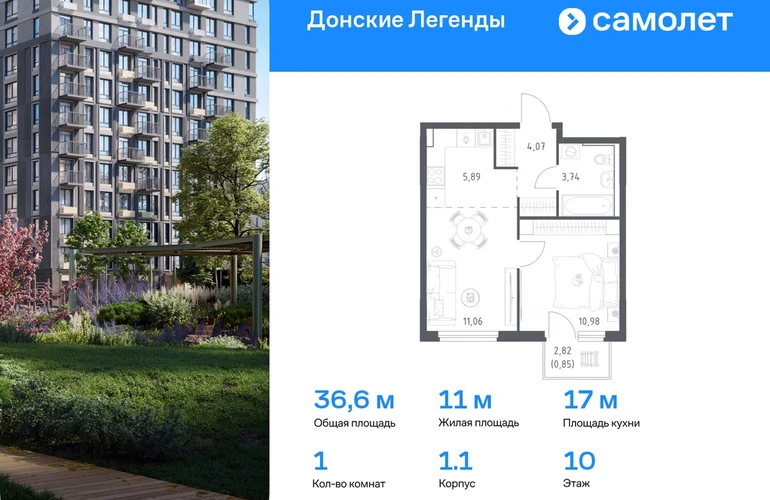 Предлагается 1-комнатная квартира комфорт-класса 36,59 кв.м в корпусе 1.1 на 10 этаже, в ЖК «Донские Легенды» Квартира с предчистовой отделкой. Доступность дополнительных опций уточняйте у застройщика. Приобрести квартиру возможно по специальным акциям от застройщика, с текущими условиями акций можно ознакомиться в блоке “Акций”. Цена динамическая и может отличаться, уточняйте актуальность у застройщика. Чувствовать гордость, когда любимая команда забивает гол, и с удовольствием спешить на тренировку по мини-футболу или теннису — так выглядит атмосфера в «Квартале Чехова» в Ленинском районе. Здесь каждый день станет ценным экспонатом в вашей коллекции впечатлений. Проект расположен рядом с Восточным шоссе и улицей Пойменной, всего в 10 минутах на машине от центра города. За 3 минуты вы доберетесь до Ворошиловского моста, а за 4 — до Темерницкого. Если не хотите ехать на машине, рядом остановки автобусов. Поблизости находится спортивный комплекс «Гребной канал Дон», а стадион «Ростов Арена» ждет любителей футбола. Прогуляться по благоустроенной набережной, повеселиться в аквапарке и подкрепиться мороженым можно в Левобережном парке — до него 5 минут на такси. Утро начнется с прогулки с малышом до одного из 3 детских садов. Рядом есть школа для ребят постарше, детская школа искусств, центр культурного развития и ФОК. В квартале откроются поликлиника со станцией скорой помощи и 2 торговых центра. Архитектура квартала сочетает современность и изящество. Элегантные французские балконы и панорамные окна позволят наслаждаться великолепными пейзажами. Во дворе дети играют на площадках, а взрослые занимаются спортом. У жителей будет собственный ипподром для соревнований по конкуру. А еще подземный и многоуровневые паркинги на 7,5 тысячи машино-мест. Входы в подъезды расположены на уровне земли, что удобно для родителей с колясками и путешественников. Для будущих жителей — квартиры без отделки. Можно реализовать любые дизайнерские идеи в своем новом доме.#yan19-2r1777174#О застройщике