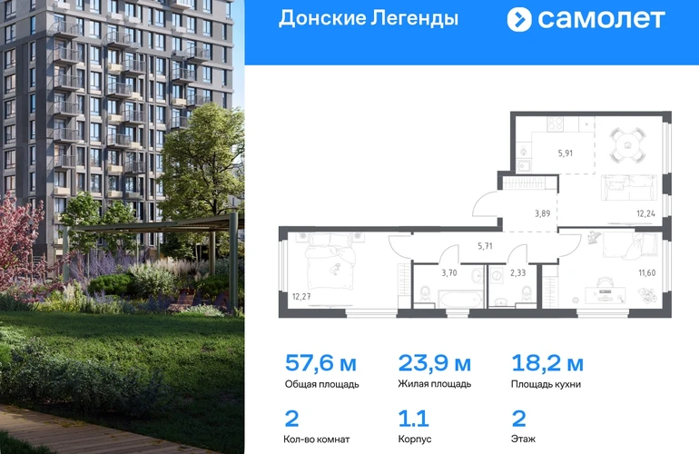 Предлагается 2-комнатная квартира комфорт-класса 57,62 кв.м в корпусе 1.1 на 2 этаже, в ЖК «Донские Легенды» Квартира без отделки. Доступность опции «отделка» и возможность комплектации мебелью и декором уточняйте у застройщика. Приобрести квартиру возможно по специальным акциям от застройщика, с текущими условиями акций можно ознакомиться в блоке «Акций». Цена динамическая и может отличаться, уточняйте актуальность у застройщика. Чувствовать гордость, когда любимая команда забивает гол, и с удовольствием спешить на тренировку по мини-футболу или теннису — так выглядит атмосфера в «Квартале Чехова» в Ленинском районе. Здесь каждый день станет ценным экспонатом в вашей коллекции впечатлений. Проект расположен рядом с Восточным шоссе и улицей Пойменной, всего в 10 минутах на машине от центра города. За 3 минуты вы доберетесь до Ворошиловского моста, а за 4 — до Темерницкого. Если не хотите ехать на машине, рядом остановки автобусов. Поблизости находится спортивный комплекс «Гребной канал Дон», а стадион «Ростов Арена» ждет любителей футбола. Прогуляться по благоустроенной набережной, повеселиться в аквапарке и подкрепиться мороженым можно в Левобережном парке — до него 5 минут на такси. Утро начнется с прогулки с малышом до одного из 3 детских садов. Рядом есть школа для ребят постарше, детская школа искусств, центр культурного развития и ФОК. В квартале откроются поликлиника со станцией скорой помощи и 2 торговых центра. Архитектура квартала сочетает современность и изящество. Элегантные французские балконы и панорамные окна позволят наслаждаться великолепными пейзажами. Во дворе дети играют на площадках, а взрослые занимаются спортом. У жителей будет собственный ипподром для соревнований по конкуру. А еще подземный и многоуровневые паркинги на 7,5 тысячи машино-мест. Входы в подъезды расположены на уровне земли, что удобно для родителей с колясками и путешественников. Для будущих жителей — квартиры без отделки. Можно реализовать любые дизайнерские идеи в своем новом доме.#yan19-2r1777185#О застройщике