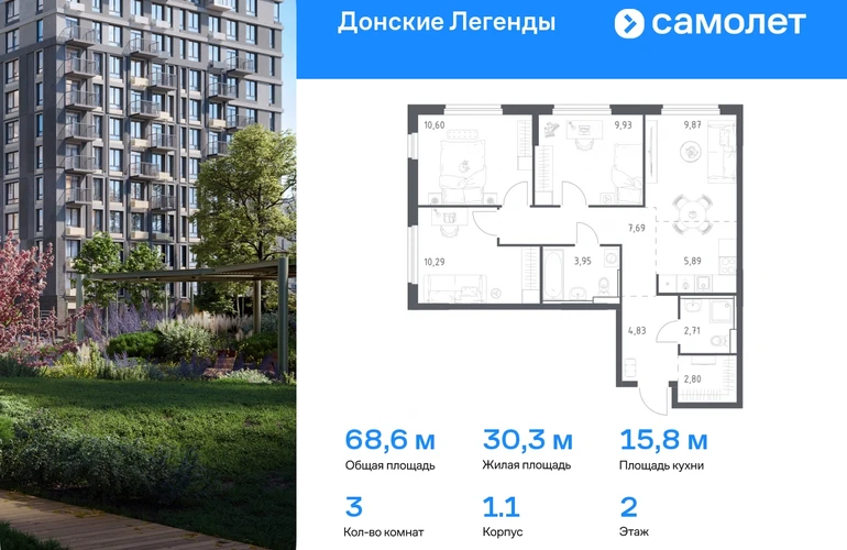 Строим кварталы для жизни с заботой о будущем. Предлагается 3-комнатная квартира комфорт-класса 68,56 кв.м в корпусе 1.1 на 2 этаже, в ЖК «Донские Легенды» Квартира с предчистовой отделкой. Доступность дополнительных опций уточняйте у застройщика. Приобрести квартиру возможно по специальным акциям от застройщика, с текущими условиями акций можно ознакомиться в блоке «Акций». Цена динамическая и может отличаться, уточняйте актуальность у застройщика. Чувствовать гордость, когда любимая команда забивает гол, и с удовольствием спешить на тренировку по мини-футболу или теннису — так выглядит атмосфера в «Квартале Чехова» в Ленинском районе. Здесь каждый день станет ценным экспонатом в вашей коллекции впечатлений. Проект расположен рядом с Восточным шоссе и улицей Пойменной, всего в 10 минутах на машине от центра города. За 3 минуты вы доберетесь до Ворошиловского моста, а за 4 — до Темерницкого. Если не хотите ехать на машине, рядом остановки автобусов. Поблизости находится спортивный комплекс «Гребной канал Дон», а стадион «Ростов Арена» ждет любителей футбола. Прогуляться по благоустроенной набережной, повеселиться в аквапарке и подкрепиться мороженым можно в Левобережном парке — до него 5 минут на такси. Утро начнется с прогулки с малышом до одного из 3 детских садов. Рядом есть школа для ребят постарше, детская школа искусств, центр культурного развития и ФОК. В квартале откроются поликлиника со станцией скорой помощи и 2 торговых центра. Архитектура квартала сочетает современность и изящество. Элегантные французские балконы и панорамные окна позволят наслаждаться великолепными пейзажами. Во дворе дети играют на площадках, а взрослые занимаются спортом. У жителей будет собственный ипподром для соревнований по конкуру. А еще подземный и многоуровневые паркинги на 7,5 тысячи машино-мест. Входы в подъезды расположены на уровне земли, что удобно для родителей с колясками и путешественников. Для будущих жителей — квартиры без отделки. Можно реализовать любые дизайнерские идеи в своем новом доме.#yan19-2r1777186#О застройщике