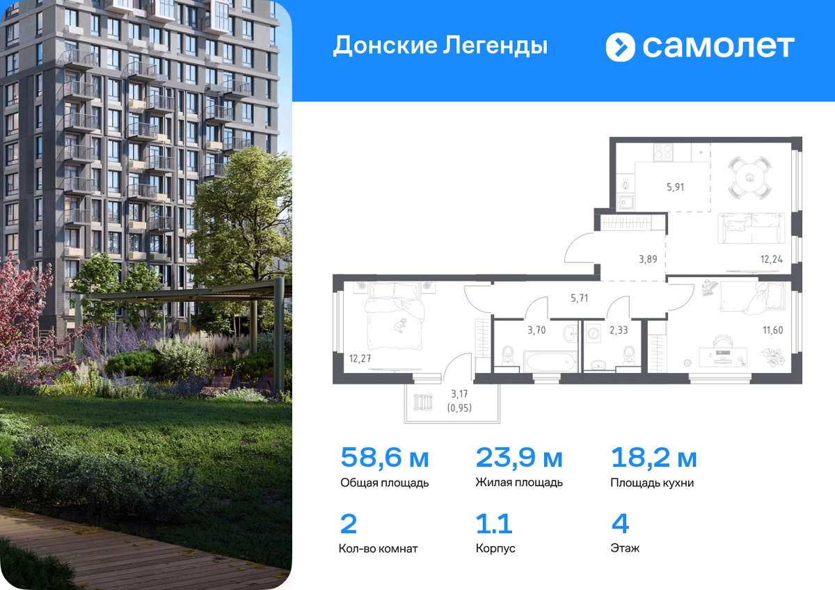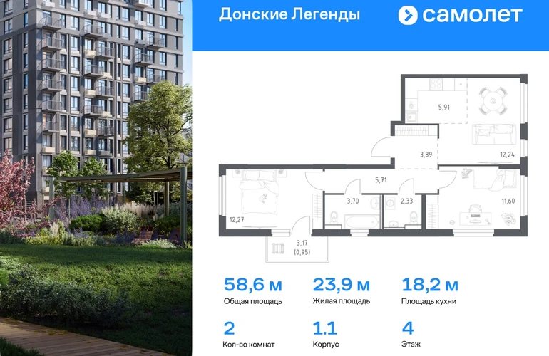 Предлагается 2-комнатная квартира комфорт-класса 58,57 кв.м в корпусе 1.1 на 4 этаже, в ЖК «Донские Легенды» Квартира без отделки. Доступность опции «отделка» и возможность комплектации мебелью и декором уточняйте у застройщика. Приобрести квартиру возможно по специальным акциям от застройщика, с текущими условиями акций можно ознакомиться в блоке «Акций». Цена динамическая и может отличаться, уточняйте актуальность у застройщика. Чувствовать гордость, когда любимая команда забивает гол, и с удовольствием спешить на тренировку по мини-футболу или теннису — так выглядит атмосфера в «Квартале Чехова» в Ленинском районе. Здесь каждый день станет ценным экспонатом в вашей коллекции впечатлений. Проект расположен рядом с Восточным шоссе и улицей Пойменной, всего в 10 минутах на машине от центра города. За 3 минуты вы доберетесь до Ворошиловского моста, а за 4 — до Темерницкого. Если не хотите ехать на машине, рядом остановки автобусов. Поблизости находится спортивный комплекс «Гребной канал Дон», а стадион «Ростов Арена» ждет любителей футбола. Прогуляться по благоустроенной набережной, повеселиться в аквапарке и подкрепиться мороженым можно в Левобережном парке — до него 5 минут на такси. Утро начнется с прогулки с малышом до одного из 3 детских садов. Рядом есть школа для ребят постарше, детская школа искусств, центр культурного развития и ФОК. В квартале откроются поликлиника со станцией скорой помощи и 2 торговых центра. Архитектура квартала сочетает современность и изящество. Элегантные французские балконы и панорамные окна позволят наслаждаться великолепными пейзажами. Во дворе дети играют на площадках, а взрослые занимаются спортом. У жителей будет собственный ипподром для соревнований по конкуру. А еще подземный и многоуровневые паркинги на 7,5 тысячи машино-мест. Входы в подъезды расположены на уровне земли, что удобно для родителей с колясками и путешественников. Для будущих жителей — квартиры без отделки. Можно реализовать любые дизайнерские идеи в своем новом доме.#yan19-2r1777193#О застройщике