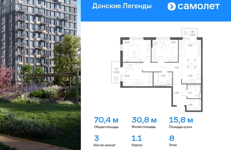 Строим кварталы для жизни с заботой о будущем. Предлагается 3-комнатная квартира комфорт-класса 70,36 кв.м в корпусе 1.1 на 8 этаже, в ЖК «Донские Легенды» Квартира с предчистовой отделкой. Доступность дополнительных опций уточняйте у застройщика. Приобрести квартиру возможно по специальным акциям от застройщика, с текущими условиями акций можно ознакомиться в блоке «Акций». Цена динамическая и может отличаться, уточняйте актуальность у застройщика. Чувствовать гордость, когда любимая команда забивает гол, и с удовольствием спешить на тренировку по мини-футболу или теннису — так выглядит атмосфера в «Квартале Чехова» в Ленинском районе. Здесь каждый день станет ценным экспонатом в вашей коллекции впечатлений. Проект расположен рядом с Восточным шоссе и улицей Пойменной, всего в 10 минутах на машине от центра города. За 3 минуты вы доберетесь до Ворошиловского моста, а за 4 — до Темерницкого. Если не хотите ехать на машине, рядом остановки автобусов. Поблизости находится спортивный комплекс «Гребной канал Дон», а стадион «Ростов Арена» ждет любителей футбола. Прогуляться по благоустроенной набережной, повеселиться в аквапарке и подкрепиться мороженым можно в Левобережном парке — до него 5 минут на такси. Утро начнется с прогулки с малышом до одного из 3 детских садов. Рядом есть школа для ребят постарше, детская школа искусств, центр культурного развития и ФОК. В квартале откроются поликлиника со станцией скорой помощи и 2 торговых центра. Архитектура квартала сочетает современность и изящество. Элегантные французские балконы и панорамные окна позволят наслаждаться великолепными пейзажами. Во дворе дети играют на площадках, а взрослые занимаются спортом. У жителей будет собственный ипподром для соревнований по конкуру. А еще подземный и многоуровневые паркинги на 7,5 тысячи машино-мест. Входы в подъезды расположены на уровне земли, что удобно для родителей с колясками и путешественников. Для будущих жителей — квартиры без отделки. Можно реализовать любые дизайнерские идеи в своем новом доме.#yan19-2r1777198#О застройщике