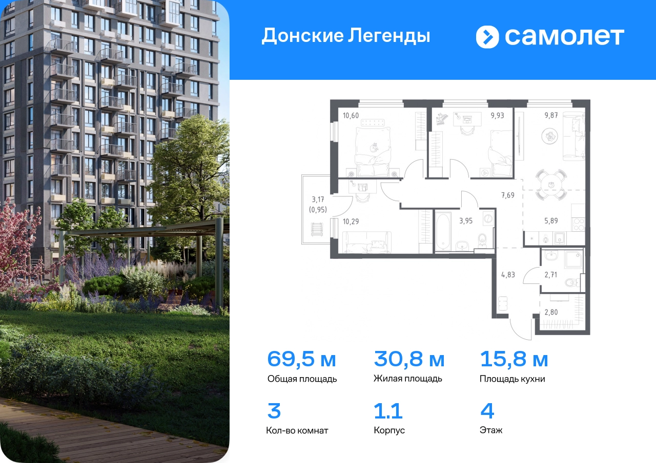 Строим кварталы для жизни с заботой о будущем. Предлагается 3-комнатная квартира комфорт-класса 69,51 кв.м в корпусе 1.1 на 4 этаже, в ЖК «Донские Легенды» Квартира с предчистовой отделкой. Доступность дополнительных опций уточняйте у застройщика. Приобрести квартиру возможно по специальным акциям от застройщика, с текущими условиями акций можно ознакомиться в блоке «Акций». Цена динамическая и может отличаться, уточняйте актуальность у застройщика. Чувствовать гордость, когда любимая команда забивает гол, и с удовольствием спешить на тренировку по мини-футболу или теннису — так выглядит атмосфера в «Квартале Чехова» в Ленинском районе. Здесь каждый день станет ценным экспонатом в вашей коллекции впечатлений. Проект расположен рядом с Восточным шоссе и улицей Пойменной, всего в 10 минутах на машине от центра города. За 3 минуты вы доберетесь до Ворошиловского моста, а за 4 — до Темерницкого. Если не хотите ехать на машине, рядом остановки автобусов. Поблизости находится спортивный комплекс «Гребной канал Дон», а стадион «Ростов Арена» ждет любителей футбола. Прогуляться по благоустроенной набережной, повеселиться в аквапарке и подкрепиться мороженым можно в Левобережном парке — до него 5 минут на такси. Утро начнется с прогулки с малышом до одного из 3 детских садов. Рядом есть школа для ребят постарше, детская школа искусств, центр культурного развития и ФОК. В квартале откроются поликлиника со станцией скорой помощи и 2 торговых центра. Архитектура квартала сочетает современность и изящество. Элегантные французские балконы и панорамные окна позволят наслаждаться великолепными пейзажами. Во дворе дети играют на площадках, а взрослые занимаются спортом. У жителей будет собственный ипподром для соревнований по конкуру. А еще подземный и многоуровневые паркинги на 7,5 тысячи машино-мест. Входы в подъезды расположены на уровне земли, что удобно для родителей с колясками и путешественников. Для будущих жителей — квартиры без отделки. Можно реализовать любые дизайнерские идеи в своем новом доме.#yan19-2r1777215#О застройщике