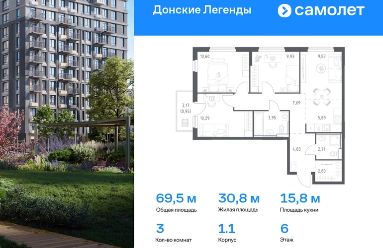 Строим кварталы для жизни с заботой о будущем. Предлагается 3-комнатная квартира комфорт-класса 69,51 кв.м в корпусе 1.1 на 6 этаже, в ЖК «Донские Легенды» Квартира с предчистовой отделкой. Доступность дополнительных опций уточняйте у застройщика. Приобрести квартиру возможно по специальным акциям от застройщика, с текущими условиями акций можно ознакомиться в блоке «Акций». Цена динамическая и может отличаться, уточняйте актуальность у застройщика. Чувствовать гордость, когда любимая команда забивает гол, и с удовольствием спешить на тренировку по мини-футболу или теннису — так выглядит атмосфера в «Квартале Чехова» в Ленинском районе. Здесь каждый день станет ценным экспонатом в вашей коллекции впечатлений. Проект расположен рядом с Восточным шоссе и улицей Пойменной, всего в 10 минутах на машине от центра города. За 3 минуты вы доберетесь до Ворошиловского моста, а за 4 — до Темерницкого. Если не хотите ехать на машине, рядом остановки автобусов. Поблизости находится спортивный комплекс «Гребной канал Дон», а стадион «Ростов Арена» ждет любителей футбола. Прогуляться по благоустроенной набережной, повеселиться в аквапарке и подкрепиться мороженым можно в Левобережном парке — до него 5 минут на такси. Утро начнется с прогулки с малышом до одного из 3 детских садов. Рядом есть школа для ребят постарше, детская школа искусств, центр культурного развития и ФОК. В квартале откроются поликлиника со станцией скорой помощи и 2 торговых центра. Архитектура квартала сочетает современность и изящество. Элегантные французские балконы и панорамные окна позволят наслаждаться великолепными пейзажами. Во дворе дети играют на площадках, а взрослые занимаются спортом. У жителей будет собственный ипподром для соревнований по конкуру. А еще подземный и многоуровневые паркинги на 7,5 тысячи машино-мест. Входы в подъезды расположены на уровне земли, что удобно для родителей с колясками и путешественников. Для будущих жителей — квартиры без отделки. Можно реализовать любые дизайнерские идеи в своем новом доме.#yan19-2r1777218#О застройщике