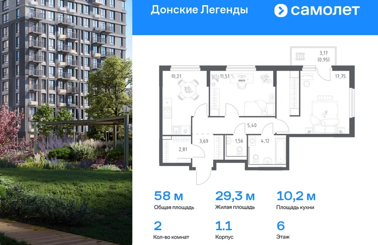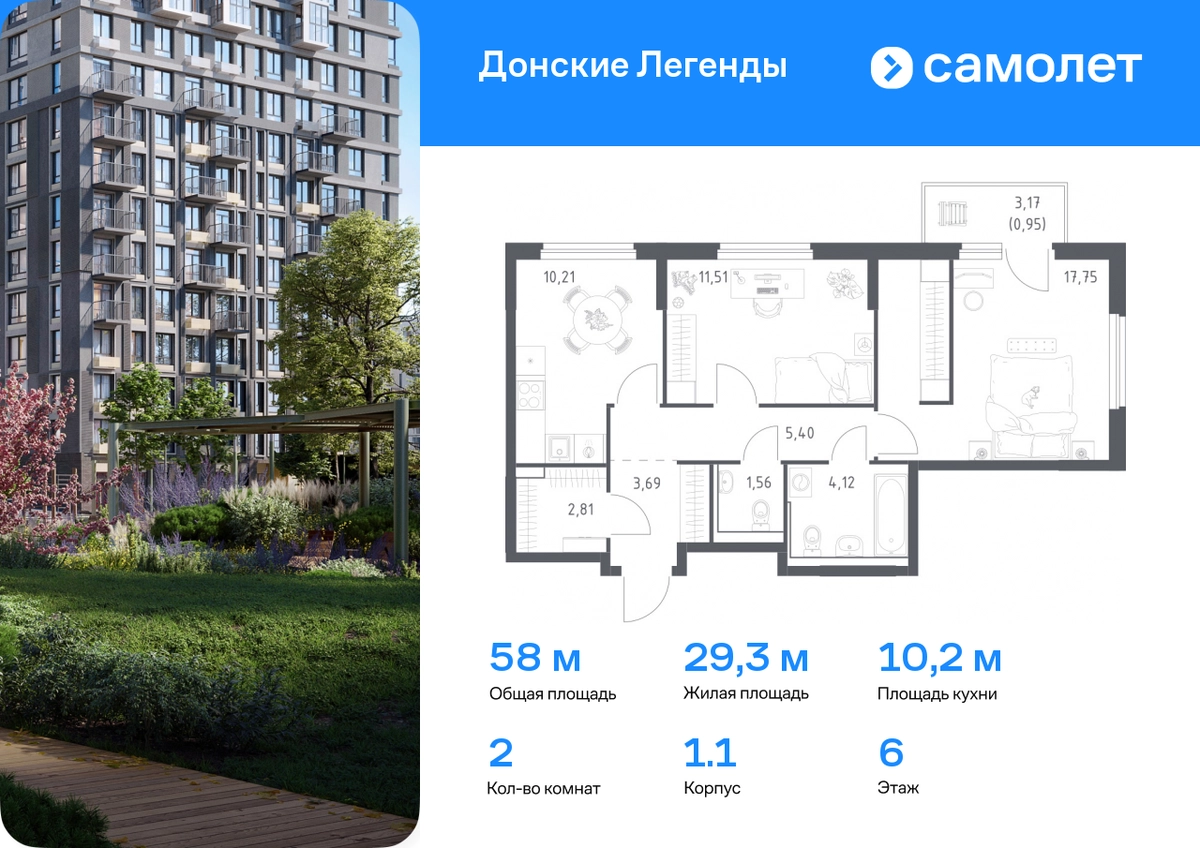 Предлагается 2-комнатная квартира комфорт-класса 58 кв.м в корпусе 1.1 на 6 этаже, в ЖК «Донские Легенды» Квартира с предчистовой отделкой. Доступность дополнительных опций уточняйте у застройщика. Приобрести квартиру возможно по специальным акциям от застройщика, с текущими условиями акций можно ознакомиться в блоке «Акций». Цена динамическая и может отличаться, уточняйте актуальность у застройщика. Чувствовать гордость, когда любимая команда забивает гол, и с удовольствием спешить на тренировку по мини-футболу или теннису — так выглядит атмосфера в «Квартале Чехова» в Ленинском районе. Здесь каждый день станет ценным экспонатом в вашей коллекции впечатлений. Проект расположен рядом с Восточным шоссе и улицей Пойменной, всего в 10 минутах на машине от центра города. За 3 минуты вы доберетесь до Ворошиловского моста, а за 4 — до Темерницкого. Если не хотите ехать на машине, рядом остановки автобусов. Поблизости находится спортивный комплекс «Гребной канал Дон», а стадион «Ростов Арена» ждет любителей футбола. Прогуляться по благоустроенной набережной, повеселиться в аквапарке и подкрепиться мороженым можно в Левобережном парке — до него 5 минут на такси. Утро начнется с прогулки с малышом до одного из 3 детских садов. Рядом есть школа для ребят постарше, детская школа искусств, центр культурного развития и ФОК. В квартале откроются поликлиника со станцией скорой помощи и 2 торговых центра. Архитектура квартала сочетает современность и изящество. Элегантные французские балконы и панорамные окна позволят наслаждаться великолепными пейзажами. Во дворе дети играют на площадках, а взрослые занимаются спортом. У жителей будет собственный ипподром для соревнований по конкуру. А еще подземный и многоуровневые паркинги на 7,5 тысячи машино-мест. Входы в подъезды расположены на уровне земли, что удобно для родителей с колясками и путешественников. Для будущих жителей — квартиры без отделки. Можно реализовать любые дизайнерские идеи в своем новом доме.#yan19-2r1777239#О застройщике