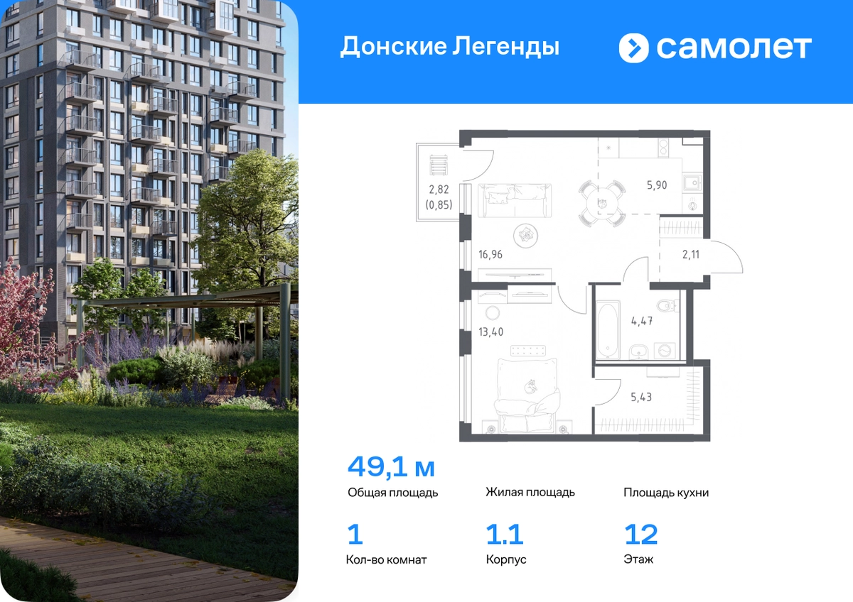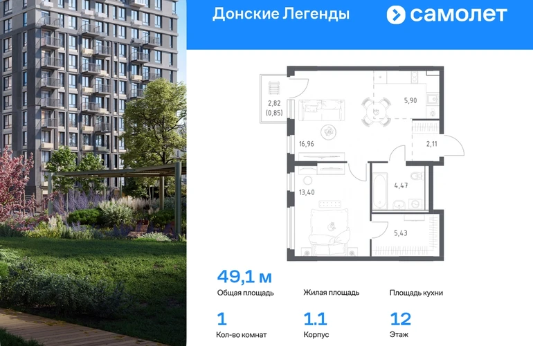 Строим кварталы для жизни с заботой о будущем. Предлагается 1-комнатная квартира комфорт-класса 49,12 кв.м в корпусе 1.1 на 12 этаже, в ЖК «Донские Легенды» Квартира с предчистовой отделкой. Доступность дополнительных опций уточняйте у застройщика. Приобрести квартиру возможно по специальным акциям от застройщика, с текущими условиями акций можно ознакомиться в блоке «Акций». Цена динамическая и может отличаться, уточняйте актуальность у застройщика. Чувствовать гордость, когда любимая команда забивает гол, и с удовольствием спешить на тренировку по мини-футболу или теннису — так выглядит атмосфера в «Квартале Чехова» в Ленинском районе. Здесь каждый день станет ценным экспонатом в вашей коллекции впечатлений. Проект расположен рядом с Восточным шоссе и улицей Пойменной, всего в 10 минутах на машине от центра города. За 3 минуты вы доберетесь до Ворошиловского моста, а за 4 — до Темерницкого. Если не хотите ехать на машине, рядом остановки автобусов. Поблизости находится спортивный комплекс «Гребной канал Дон», а стадион «Ростов Арена» ждет любителей футбола. Прогуляться по благоустроенной набережной, повеселиться в аквапарке и подкрепиться мороженым можно в Левобережном парке — до него 5 минут на такси. Утро начнется с прогулки с малышом до одного из 3 детских садов. Рядом есть школа для ребят постарше, детская школа искусств, центр культурного развития и ФОК. В квартале откроются поликлиника со станцией скорой помощи и 2 торговых центра. Архитектура квартала сочетает современность и изящество. Элегантные французские балконы и панорамные окна позволят наслаждаться великолепными пейзажами. Во дворе дети играют на площадках, а взрослые занимаются спортом. У жителей будет собственный ипподром для соревнований по конкуру. А еще подземный и многоуровневые паркинги на 7,5 тысячи машино-мест. Входы в подъезды расположены на уровне земли, что удобно для родителей с колясками и путешественников. Для будущих жителей — квартиры без отделки. Можно реализовать любые дизайнерские идеи в своем новом доме.#yan19-2r1787315#О застройщике