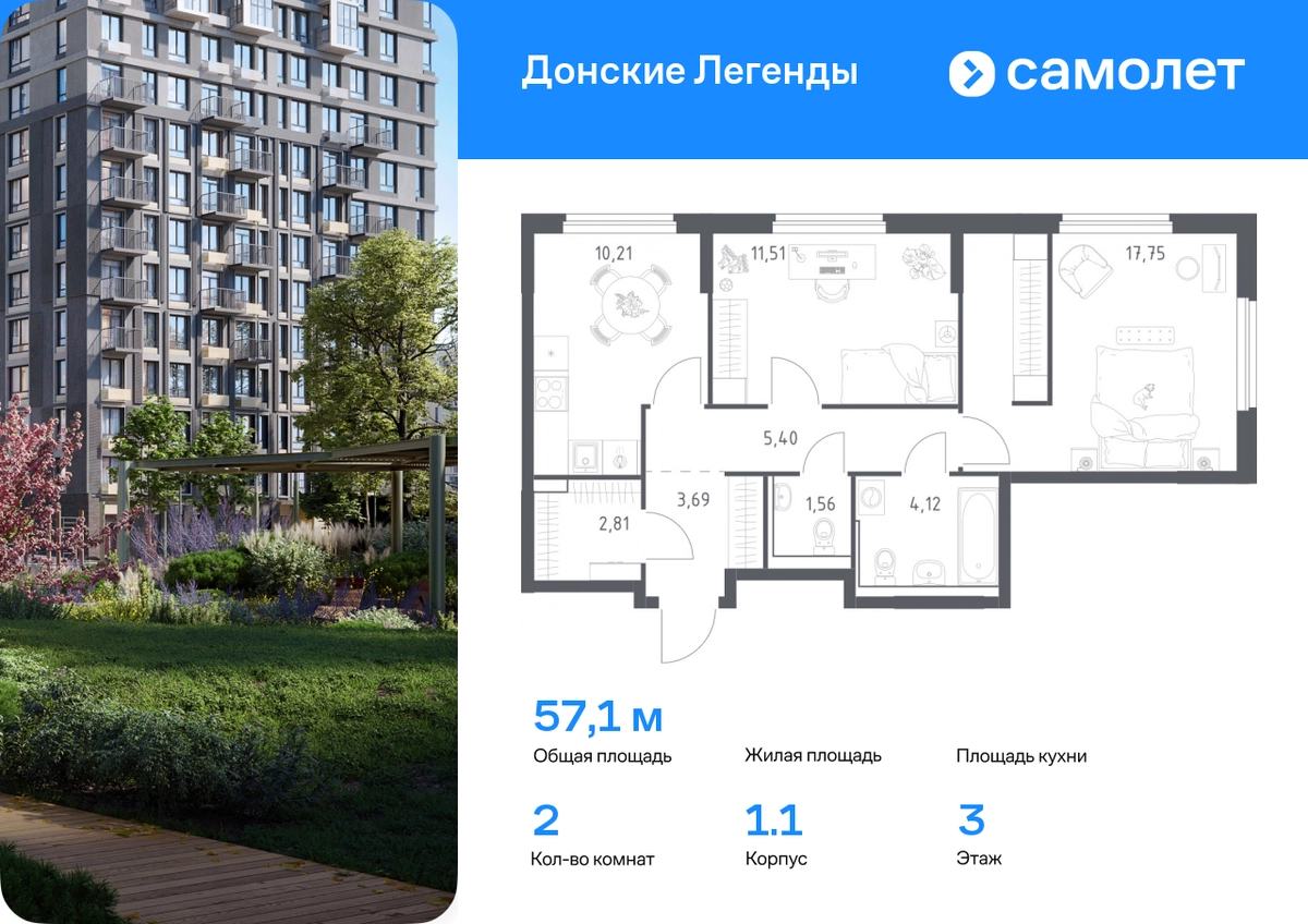 Строим кварталы для жизни с заботой о будущем. Предлагается 2-комнатная квартира комфорт-класса 57,05 кв.м в корпусе 1.1 на 3 этаже, в ЖК «Донские Легенды» Квартира с предчистовой отделкой. Доступность дополнительных опций уточняйте у застройщика. Приобрести квартиру возможно по специальным акциям от застройщика, с текущими условиями акций можно ознакомиться в блоке «Акций». Цена динамическая и может отличаться, уточняйте актуальность у застройщика. Чувствовать гордость, когда любимая команда забивает гол, и с удовольствием спешить на тренировку по мини-футболу или теннису — так выглядит атмосфера в «Квартале Чехова» в Ленинском районе. Здесь каждый день станет ценным экспонатом в вашей коллекции впечатлений. Проект расположен рядом с Восточным шоссе и улицей Пойменной, всего в 10 минутах на машине от центра города. За 3 минуты вы доберетесь до Ворошиловского моста, а за 4 — до Темерницкого. Если не хотите ехать на машине, рядом остановки автобусов. Поблизости находится спортивный комплекс «Гребной канал Дон», а стадион «Ростов Арена» ждет любителей футбола. Прогуляться по благоустроенной набережной, повеселиться в аквапарке и подкрепиться мороженым можно в Левобережном парке — до него 5 минут на такси. Утро начнется с прогулки с малышом до одного из 3 детских садов. Рядом есть школа для ребят постарше, детская школа искусств, центр культурного развития и ФОК. В квартале откроются поликлиника со станцией скорой помощи и 2 торговых центра. Архитектура квартала сочетает современность и изящество. Элегантные французские балконы и панорамные окна позволят наслаждаться великолепными пейзажами. Во дворе дети играют на площадках, а взрослые занимаются спортом. У жителей будет собственный ипподром для соревнований по конкуру. А еще подземный и многоуровневые паркинги на 7,5 тысячи машино-мест. Входы в подъезды расположены на уровне земли, что удобно для родителей с колясками и путешественников. Для будущих жителей — квартиры без отделки. Можно реализовать любые дизайнерские идеи в своем новом доме.#yan19-2r1788806#О застройщике