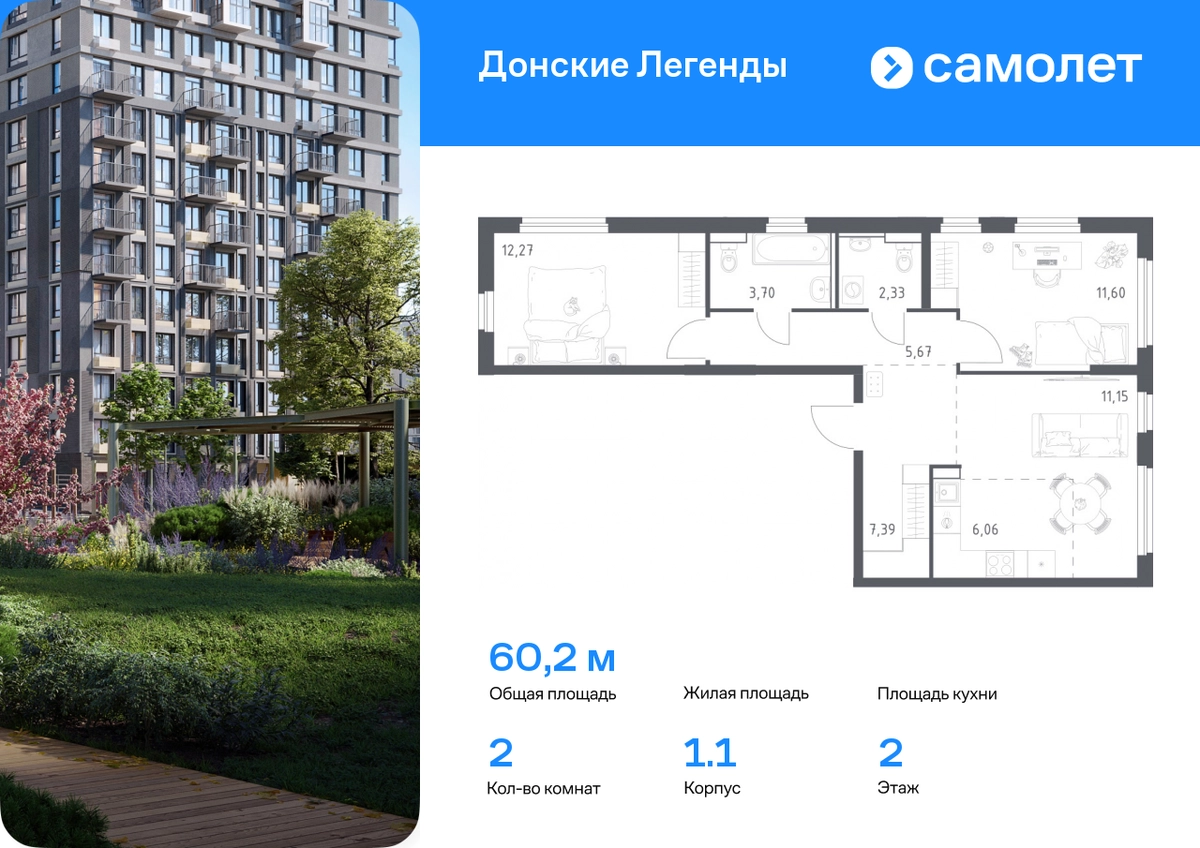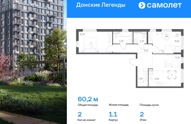 Предлагается 2-комнатная квартира комфорт-класса 60,17 кв.м в корпусе 1.1 на 2 этаже, в ЖК «Донские Легенды» Квартира без отделки. Доступность опции "отделка" и возможность комплектации мебелью и декором уточняйте у застройщика. Приобрести квартиру возможно по специальным акциям от застройщика, с текущими условиями акций можно ознакомиться в блоке “Акций”. Цена динамическая и может отличаться, уточняйте актуальность у застройщика. Чувствовать гордость, когда любимая команда забивает гол, и с удовольствием спешить на тренировку по мини-футболу или теннису — так выглядит атмосфера в «Квартале Чехова» в Ленинском районе. Здесь каждый день станет ценным экспонатом в вашей коллекции впечатлений. Проект расположен рядом с Восточным шоссе и улицей Пойменной, всего в 10 минутах на машине от центра города. За 3 минуты вы доберетесь до Ворошиловского моста, а за 4 — до Темерницкого. Если не хотите ехать на машине, рядом остановки автобусов. Поблизости находится спортивный комплекс «Гребной канал Дон», а стадион «Ростов Арена» ждет любителей футбола. Прогуляться по благоустроенной набережной, повеселиться в аквапарке и подкрепиться мороженым можно в Левобережном парке — до него 5 минут на такси. Утро начнется с прогулки с малышом до одного из 3 детских садов. Рядом есть школа для ребят постарше, детская школа искусств, центр культурного развития и ФОК. В квартале откроются поликлиника со станцией скорой помощи и 2 торговых центра. Архитектура квартала сочетает современность и изящество. Элегантные французские балконы и панорамные окна позволят наслаждаться великолепными пейзажами. Во дворе дети играют на площадках, а взрослые занимаются спортом. У жителей будет собственный ипподром для соревнований по конкуру. А еще подземный и многоуровневые паркинги на 7,5 тысячи машино-мест. Входы в подъезды расположены на уровне земли, что удобно для родителей с колясками и путешественников. Для будущих жителей — квартиры без отделки. Можно реализовать любые дизайнерские идеи в своем новом доме.#yan19-2r1788807#О застройщике