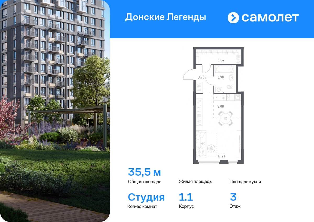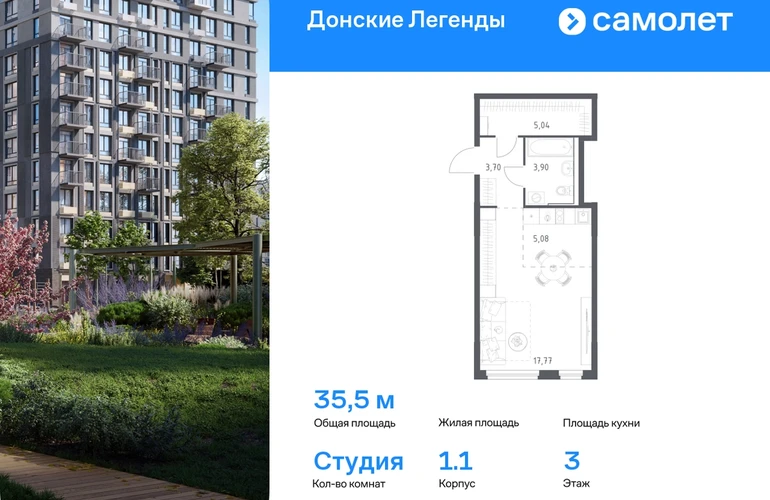 Строим кварталы для жизни с заботой о будущем. Предлагается квартира студия комфорт-класса 35,49 кв.м в корпусе 1.1 на 3 этаже, в ЖК «Донские Легенды» Квартира с предчистовой отделкой. Доступность дополнительных опций уточняйте у застройщика. Приобрести квартиру возможно по специальным акциям от застройщика, с текущими условиями акций можно ознакомиться в блоке «Акций». Цена динамическая и может отличаться, уточняйте актуальность у застройщика. Чувствовать гордость, когда любимая команда забивает гол, и с удовольствием спешить на тренировку по мини-футболу или теннису — так выглядит атмосфера в «Квартале Чехова» в Ленинском районе. Здесь каждый день станет ценным экспонатом в вашей коллекции впечатлений. Проект расположен рядом с Восточным шоссе и улицей Пойменной, всего в 10 минутах на машине от центра города. За 3 минуты вы доберетесь до Ворошиловского моста, а за 4 — до Темерницкого. Если не хотите ехать на машине, рядом остановки автобусов. Поблизости находится спортивный комплекс «Гребной канал Дон», а стадион «Ростов Арена» ждет любителей футбола. Прогуляться по благоустроенной набережной, повеселиться в аквапарке и подкрепиться мороженым можно в Левобережном парке — до него 5 минут на такси. Утро начнется с прогулки с малышом до одного из 3 детских садов. Рядом есть школа для ребят постарше, детская школа искусств, центр культурного развития и ФОК. В квартале откроются поликлиника со станцией скорой помощи и 2 торговых центра. Архитектура квартала сочетает современность и изящество. Элегантные французские балконы и панорамные окна позволят наслаждаться великолепными пейзажами. Во дворе дети играют на площадках, а взрослые занимаются спортом. У жителей будет собственный ипподром для соревнований по конкуру. А еще подземный и многоуровневые паркинги на 7,5 тысячи машино-мест. Входы в подъезды расположены на уровне земли, что удобно для родителей с колясками и путешественников. Для будущих жителей — квартиры без отделки. Можно реализовать любые дизайнерские идеи в своем новом доме.#yan19-2r1788809#О застройщике