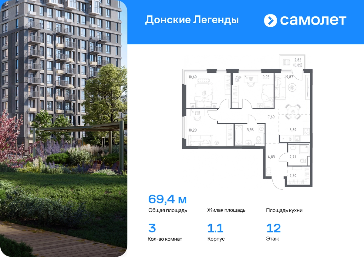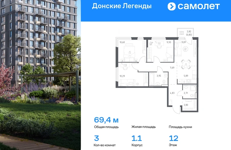 Строим кварталы для жизни с заботой о будущем. Предлагается 3-комнатная квартира комфорт-класса 69,41 кв.м в корпусе 1.1 на 12 этаже, в ЖК «Донские Легенды» Квартира с предчистовой отделкой. Доступность дополнительных опций уточняйте у застройщика. Приобрести квартиру возможно по специальным акциям от застройщика, с текущими условиями акций можно ознакомиться в блоке «Акций». Цена динамическая и может отличаться, уточняйте актуальность у застройщика. Чувствовать гордость, когда любимая команда забивает гол, и с удовольствием спешить на тренировку по мини-футболу или теннису — так выглядит атмосфера в «Квартале Чехова» в Ленинском районе. Здесь каждый день станет ценным экспонатом в вашей коллекции впечатлений. Проект расположен рядом с Восточным шоссе и улицей Пойменной, всего в 10 минутах на машине от центра города. За 3 минуты вы доберетесь до Ворошиловского моста, а за 4 — до Темерницкого. Если не хотите ехать на машине, рядом остановки автобусов. Поблизости находится спортивный комплекс «Гребной канал Дон», а стадион «Ростов Арена» ждет любителей футбола. Прогуляться по благоустроенной набережной, повеселиться в аквапарке и подкрепиться мороженым можно в Левобережном парке — до него 5 минут на такси. Утро начнется с прогулки с малышом до одного из 3 детских садов. Рядом есть школа для ребят постарше, детская школа искусств, центр культурного развития и ФОК. В квартале откроются поликлиника со станцией скорой помощи и 2 торговых центра. Архитектура квартала сочетает современность и изящество. Элегантные французские балконы и панорамные окна позволят наслаждаться великолепными пейзажами. Во дворе дети играют на площадках, а взрослые занимаются спортом. У жителей будет собственный ипподром для соревнований по конкуру. А еще подземный и многоуровневые паркинги на 7,5 тысячи машино-мест. Входы в подъезды расположены на уровне земли, что удобно для родителей с колясками и путешественников. Для будущих жителей — квартиры без отделки. Можно реализовать любые дизайнерские идеи в своем новом доме.#yan19-2r1788816#О застройщике