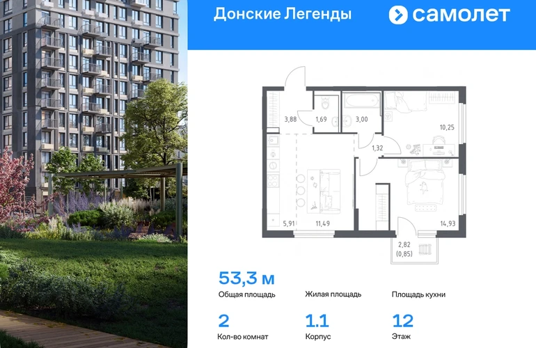 Строим кварталы для жизни с заботой о будущем. Предлагается 2-комнатная квартира комфорт-класса 53,32 кв.м в корпусе 1.1 на 12 этаже, в ЖК «Донские Легенды» Квартира без отделки. Доступность опции «отделка» и возможность комплектации мебелью и декором уточняйте у застройщика. Приобрести квартиру возможно по специальным акциям от застройщика, с текущими условиями акций можно ознакомиться в блоке «Акций». Цена динамическая и может отличаться, уточняйте актуальность у застройщика. Чувствовать гордость, когда любимая команда забивает гол, и с удовольствием спешить на тренировку по мини-футболу или теннису — так выглядит атмосфера в «Квартале Чехова» в Ленинском районе. Здесь каждый день станет ценным экспонатом в вашей коллекции впечатлений. Проект расположен рядом с Восточным шоссе и улицей Пойменной, всего в 10 минутах на машине от центра города. За 3 минуты вы доберетесь до Ворошиловского моста, а за 4 — до Темерницкого. Если не хотите ехать на машине, рядом остановки автобусов. Поблизости находится спортивный комплекс «Гребной канал Дон», а стадион «Ростов Арена» ждет любителей футбола. Прогуляться по благоустроенной набережной, повеселиться в аквапарке и подкрепиться мороженым можно в Левобережном парке — до него 5 минут на такси. Утро начнется с прогулки с малышом до одного из 3 детских садов. Рядом есть школа для ребят постарше, детская школа искусств, центр культурного развития и ФОК. В квартале откроются поликлиника со станцией скорой помощи и 2 торговых центра. Архитектура квартала сочетает современность и изящество. Элегантные французские балконы и панорамные окна позволят наслаждаться великолепными пейзажами. Во дворе дети играют на площадках, а взрослые занимаются спортом. У жителей будет собственный ипподром для соревнований по конкуру. А еще подземный и многоуровневые паркинги на 7,5 тысячи машино-мест. Входы в подъезды расположены на уровне земли, что удобно для родителей с колясками и путешественников. Для будущих жителей — квартиры без отделки. Можно реализовать любые дизайнерские идеи в своем новом доме.#yan19-2r1788820#О застройщике