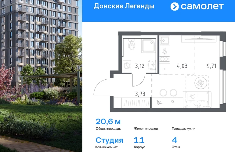 Предлагается квартира студия комфорт-класса 20,59 кв.м в корпусе 1.1 на 4 этаже, в ЖК «Донские Легенды» Квартира с предчистовой отделкой. Доступность дополнительных опций уточняйте у застройщика. Приобрести квартиру возможно по специальным акциям от застройщика, с текущими условиями акций можно ознакомиться в блоке «Акций». Цена динамическая и может отличаться, уточняйте актуальность у застройщика. Чувствовать гордость, когда любимая команда забивает гол, и с удовольствием спешить на тренировку по мини-футболу или теннису — так выглядит атмосфера в «Квартале Чехова» в Ленинском районе. Здесь каждый день станет ценным экспонатом в вашей коллекции впечатлений. Проект расположен рядом с Восточным шоссе и улицей Пойменной, всего в 10 минутах на машине от центра города. За 3 минуты вы доберетесь до Ворошиловского моста, а за 4 — до Темерницкого. Если не хотите ехать на машине, рядом остановки автобусов. Поблизости находится спортивный комплекс «Гребной канал Дон», а стадион «Ростов Арена» ждет любителей футбола. Прогуляться по благоустроенной набережной, повеселиться в аквапарке и подкрепиться мороженым можно в Левобережном парке — до него 5 минут на такси. Утро начнется с прогулки с малышом до одного из 3 детских садов. Рядом есть школа для ребят постарше, детская школа искусств, центр культурного развития и ФОК. В квартале откроются поликлиника со станцией скорой помощи и 2 торговых центра. Архитектура квартала сочетает современность и изящество. Элегантные французские балконы и панорамные окна позволят наслаждаться великолепными пейзажами. Во дворе дети играют на площадках, а взрослые занимаются спортом. У жителей будет собственный ипподром для соревнований по конкуру. А еще подземный и многоуровневые паркинги на 7,5 тысячи машино-мест. Входы в подъезды расположены на уровне земли, что удобно для родителей с колясками и путешественников. Для будущих жителей — квартиры без отделки. Можно реализовать любые дизайнерские идеи в своем новом доме.#yan19-2r1790420#О застройщике