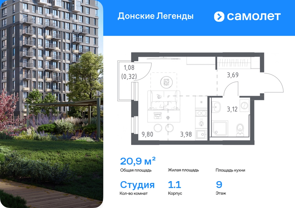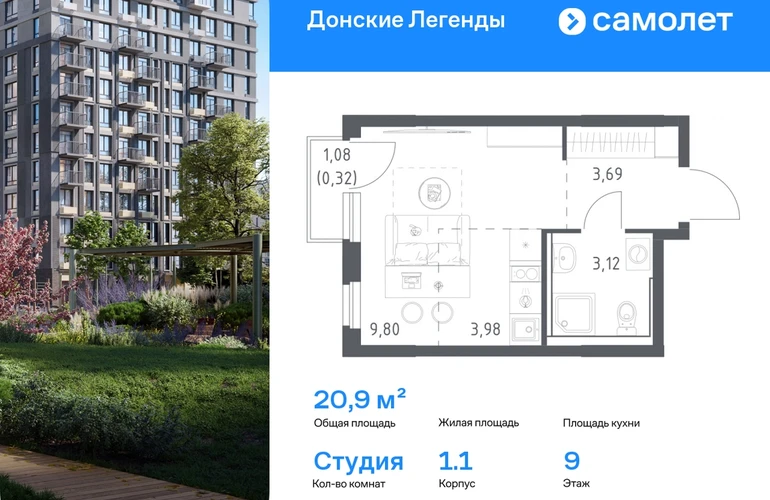 Строим кварталы для жизни с заботой о будущем. Предлагается квартира студия комфорт-класса 20,91 кв.м в корпусе 1.1 на 9 этаже, в ЖК «Донские Легенды» Квартира без отделки. Доступность опции «отделка» и возможность комплектации мебелью и декором уточняйте у застройщика. Приобрести квартиру возможно по специальным акциям от застройщика, с текущими условиями акций можно ознакомиться в блоке «Акций». Цена динамическая и может отличаться, уточняйте актуальность у застройщика. Чувствовать гордость, когда любимая команда забивает гол, и с удовольствием спешить на тренировку по мини-футболу или теннису — так выглядит атмосфера в «Квартале Чехова» в Ленинском районе. Здесь каждый день станет ценным экспонатом в вашей коллекции впечатлений. Проект расположен рядом с Восточным шоссе и улицей Пойменной, всего в 10 минутах на машине от центра города. За 3 минуты вы доберетесь до Ворошиловского моста, а за 4 — до Темерницкого. Если не хотите ехать на машине, рядом остановки автобусов. Поблизости находится спортивный комплекс «Гребной канал Дон», а стадион «Ростов Арена» ждет любителей футбола. Прогуляться по благоустроенной набережной, повеселиться в аквапарке и подкрепиться мороженым можно в Левобережном парке — до него 5 минут на такси. Утро начнется с прогулки с малышом до одного из 3 детских садов. Рядом есть школа для ребят постарше, детская школа искусств, центр культурного развития и ФОК. В квартале откроются поликлиника со станцией скорой помощи и 2 торговых центра. Архитектура квартала сочетает современность и изящество. Элегантные французские балконы и панорамные окна позволят наслаждаться великолепными пейзажами. Во дворе дети играют на площадках, а взрослые занимаются спортом. У жителей будет собственный ипподром для соревнований по конкуру. А еще подземный и многоуровневые паркинги на 7,5 тысячи машино-мест. Входы в подъезды расположены на уровне земли, что удобно для родителей с колясками и путешественников. Для будущих жителей — квартиры без отделки. Можно реализовать любые дизайнерские идеи в своем новом доме.#yan19-2r1805777#О застройщике