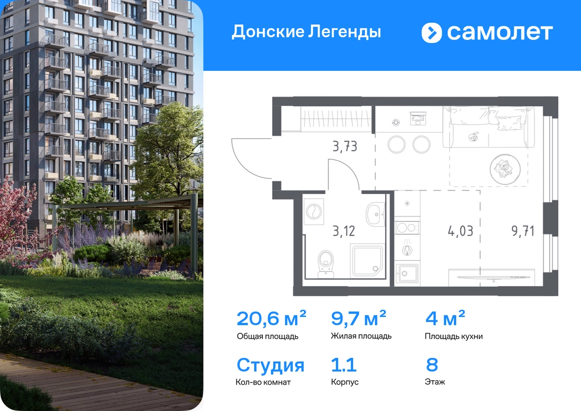 Строим кварталы для жизни с заботой о будущем. Предлагается квартира студия комфорт-класса 20,59 кв.м в корпусе 1.1 на 8 этаже, в ЖК «Донские Легенды» Квартира с предчистовой отделкой. Доступность дополнительных опций уточняйте у застройщика. Приобрести квартиру возможно по специальным акциям от застройщика, с текущими условиями акций можно ознакомиться в блоке «Акций». Цена динамическая и может отличаться, уточняйте актуальность у застройщика. Чувствовать гордость, когда любимая команда забивает гол, и с удовольствием спешить на тренировку по мини-футболу или теннису — так выглядит атмосфера в «Квартале Чехова» в Ленинском районе. Здесь каждый день станет ценным экспонатом в вашей коллекции впечатлений. Проект расположен рядом с Восточным шоссе и улицей Пойменной, всего в 10 минутах на машине от центра города. За 3 минуты вы доберетесь до Ворошиловского моста, а за 4 — до Темерницкого. Если не хотите ехать на машине, рядом остановки автобусов. Поблизости находится спортивный комплекс «Гребной канал Дон», а стадион «Ростов Арена» ждет любителей футбола. Прогуляться по благоустроенной набережной, повеселиться в аквапарке и подкрепиться мороженым можно в Левобережном парке — до него 5 минут на такси. Утро начнется с прогулки с малышом до одного из 3 детских садов. Рядом есть школа для ребят постарше, детская школа искусств, центр культурного развития и ФОК. В квартале откроются поликлиника со станцией скорой помощи и 2 торговых центра. Архитектура квартала сочетает современность и изящество. Элегантные французские балконы и панорамные окна позволят наслаждаться великолепными пейзажами. Во дворе дети играют на площадках, а взрослые занимаются спортом. У жителей будет собственный ипподром для соревнований по конкуру. А еще подземный и многоуровневые паркинги на 7,5 тысячи машино-мест. Входы в подъезды расположены на уровне земли, что удобно для родителей с колясками и путешественников. Для будущих жителей — квартиры без отделки. Можно реализовать любые дизайнерские идеи в своем новом доме.#yan19-2r1805778#О застройщике