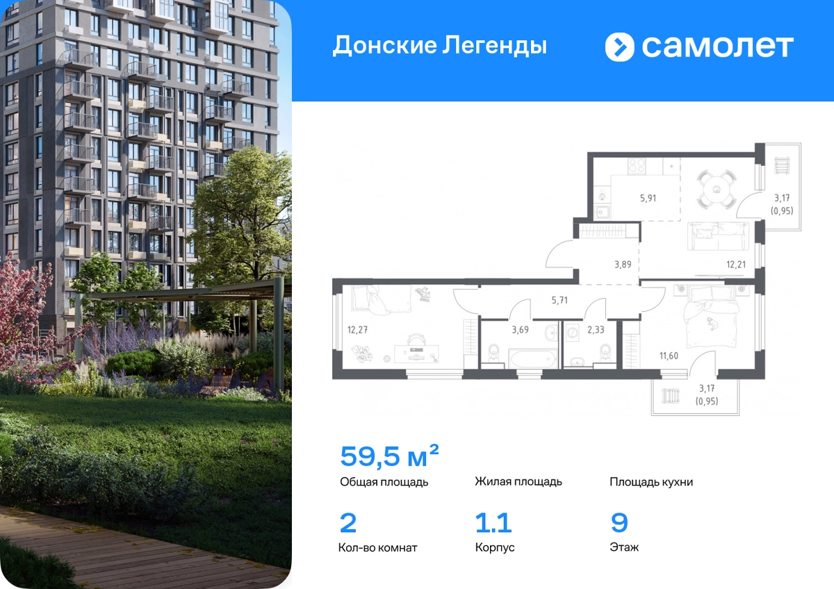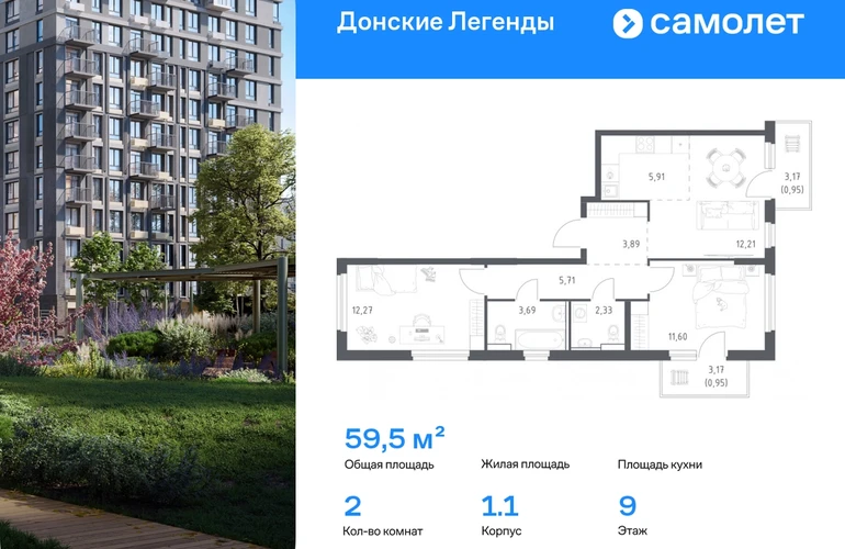 Строим кварталы для жизни с заботой о будущем. Предлагается 2-комнатная квартира комфорт-класса 59,51 кв.м в корпусе 1.1 на 9 этаже, в ЖК «Донские Легенды» Квартира без отделки. Доступность опции «отделка» и возможность комплектации мебелью и декором уточняйте у застройщика. Приобрести квартиру возможно по специальным акциям от застройщика, с текущими условиями акций можно ознакомиться в блоке «Акций». Цена динамическая и может отличаться, уточняйте актуальность у застройщика. Чувствовать гордость, когда любимая команда забивает гол, и с удовольствием спешить на тренировку по мини-футболу или теннису — так выглядит атмосфера в «Квартале Чехова» в Ленинском районе. Здесь каждый день станет ценным экспонатом в вашей коллекции впечатлений. Проект расположен рядом с Восточным шоссе и улицей Пойменной, всего в 10 минутах на машине от центра города. За 3 минуты вы доберетесь до Ворошиловского моста, а за 4 — до Темерницкого. Если не хотите ехать на машине, рядом остановки автобусов. Поблизости находится спортивный комплекс «Гребной канал Дон», а стадион «Ростов Арена» ждет любителей футбола. Прогуляться по благоустроенной набережной, повеселиться в аквапарке и подкрепиться мороженым можно в Левобережном парке — до него 5 минут на такси. Утро начнется с прогулки с малышом до одного из 3 детских садов. Рядом есть школа для ребят постарше, детская школа искусств, центр культурного развития и ФОК. В квартале откроются поликлиника со станцией скорой помощи и 2 торговых центра. Архитектура квартала сочетает современность и изящество. Элегантные французские балконы и панорамные окна позволят наслаждаться великолепными пейзажами. Во дворе дети играют на площадках, а взрослые занимаются спортом. У жителей будет собственный ипподром для соревнований по конкуру. А еще подземный и многоуровневые паркинги на 7,5 тысячи машино-мест. Входы в подъезды расположены на уровне земли, что удобно для родителей с колясками и путешественников. Для будущих жителей — квартиры без отделки. Можно реализовать любые дизайнерские идеи в своем новом доме.#yan19-2r1807981#О застройщике
