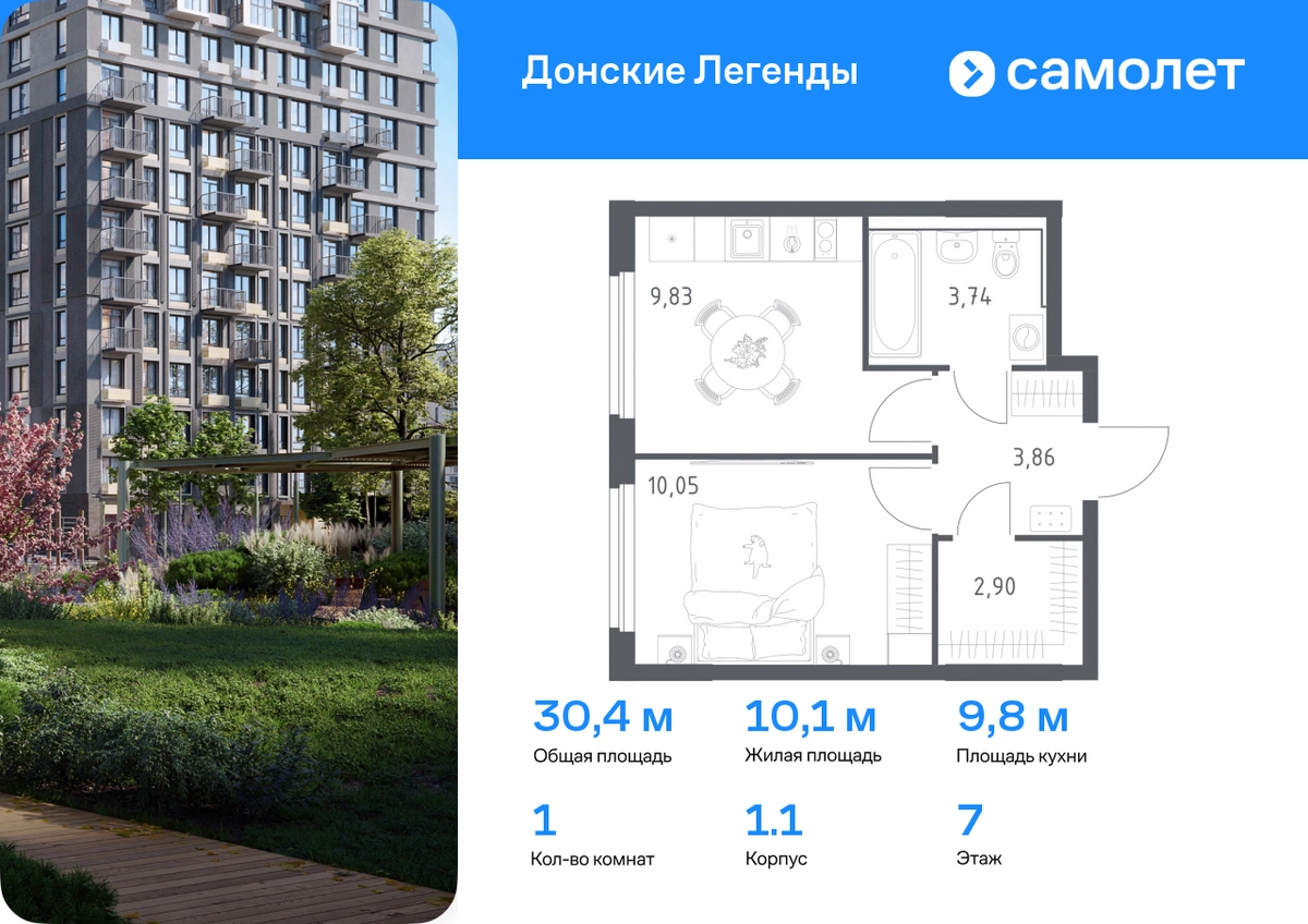 Предлагается 1-комнатная квартира комфорт-класса 30,38 кв.м в корпусе 1.1 на 7 этаже, в ЖК «Донские Легенды» Квартира без отделки. Доступность опции «отделка» и возможность комплектации мебелью и декором уточняйте у застройщика. Приобрести квартиру возможно по специальным акциям от застройщика, с текущими условиями акций можно ознакомиться в блоке «Акций». Цена динамическая и может отличаться, уточняйте актуальность у застройщика. Чувствовать гордость, когда любимая команда забивает гол, и с удовольствием спешить на тренировку по мини-футболу или теннису — так выглядит атмосфера в «Квартале Чехова» в Ленинском районе. Здесь каждый день станет ценным экспонатом в вашей коллекции впечатлений. Проект расположен рядом с Восточным шоссе и улицей Пойменной, всего в 10 минутах на машине от центра города. За 3 минуты вы доберетесь до Ворошиловского моста, а за 4 — до Темерницкого. Если не хотите ехать на машине, рядом остановки автобусов. Поблизости находится спортивный комплекс «Гребной канал Дон», а стадион «Ростов Арена» ждет любителей футбола. Прогуляться по благоустроенной набережной, повеселиться в аквапарке и подкрепиться мороженым можно в Левобережном парке — до него 5 минут на такси. Утро начнется с прогулки с малышом до одного из 3 детских садов. Рядом есть школа для ребят постарше, детская школа искусств, центр культурного развития и ФОК. В квартале откроются поликлиника со станцией скорой помощи и 2 торговых центра. Архитектура квартала сочетает современность и изящество. Элегантные французские балконы и панорамные окна позволят наслаждаться великолепными пейзажами. Во дворе дети играют на площадках, а взрослые занимаются спортом. У жителей будет собственный ипподром для соревнований по конкуру. А еще подземный и многоуровневые паркинги на 7,5 тысячи машино-мест. Входы в подъезды расположены на уровне земли, что удобно для родителей с колясками и путешественников. Для будущих жителей — квартиры без отделки. Можно реализовать любые дизайнерские идеи в своем новом доме.#yan19-2r1809678#О застройщике