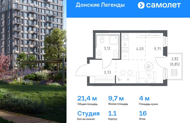 Предлагается квартира студия комфорт-класса 21,44 кв.м в корпусе 1.1 на 16 этаже, в ЖК «Донские Легенды» Квартира с предчистовой отделкой. Доступность дополнительных опций уточняйте у застройщика. Приобрести квартиру возможно по специальным акциям от застройщика, с текущими условиями акций можно ознакомиться в блоке «Акций». Цена динамическая и может отличаться, уточняйте актуальность у застройщика. Чувствовать гордость, когда любимая команда забивает гол, и с удовольствием спешить на тренировку по мини-футболу или теннису — так выглядит атмосфера в «Квартале Чехова» в Ленинском районе. Здесь каждый день станет ценным экспонатом в вашей коллекции впечатлений. Проект расположен рядом с Восточным шоссе и улицей Пойменной, всего в 10 минутах на машине от центра города. За 3 минуты вы доберетесь до Ворошиловского моста, а за 4 — до Темерницкого. Если не хотите ехать на машине, рядом остановки автобусов. Поблизости находится спортивный комплекс «Гребной канал Дон», а стадион «Ростов Арена» ждет любителей футбола. Прогуляться по благоустроенной набережной, повеселиться в аквапарке и подкрепиться мороженым можно в Левобережном парке — до него 5 минут на такси. Утро начнется с прогулки с малышом до одного из 3 детских садов. Рядом есть школа для ребят постарше, детская школа искусств, центр культурного развития и ФОК. В квартале откроются поликлиника со станцией скорой помощи и 2 торговых центра. Архитектура квартала сочетает современность и изящество. Элегантные французские балконы и панорамные окна позволят наслаждаться великолепными пейзажами. Во дворе дети играют на площадках, а взрослые занимаются спортом. У жителей будет собственный ипподром для соревнований по конкуру. А еще подземный и многоуровневые паркинги на 7,5 тысячи машино-мест. Входы в подъезды расположены на уровне земли, что удобно для родителей с колясками и путешественников. Для будущих жителей — квартиры без отделки. Можно реализовать любые дизайнерские идеи в своем новом доме.#yan19-2r1810396#О застройщике