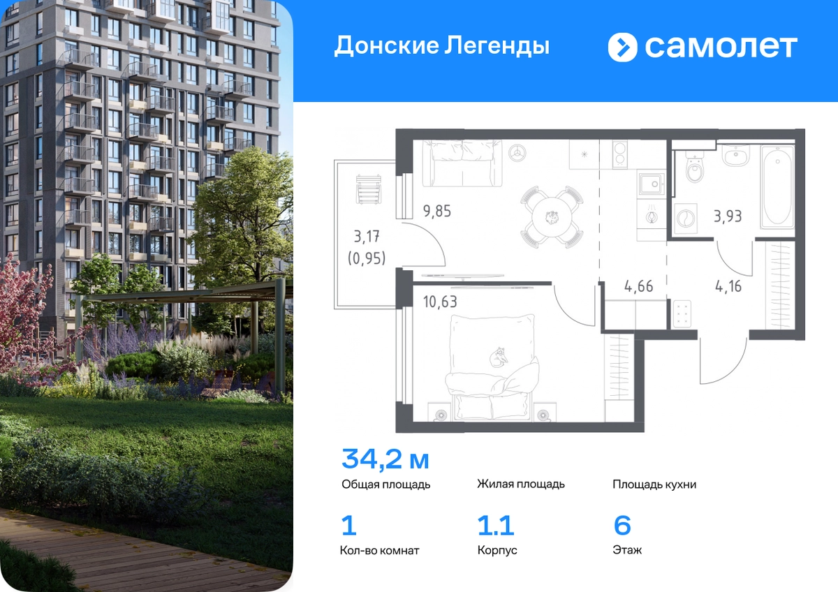 Строим кварталы для жизни с заботой о будущем. Предлагается 1-комнатная квартира комфорт-класса 34,18 кв.м в корпусе 1.1 на 6 этаже, в ЖК «Донские Легенды» Квартира без отделки. Доступность опции «отделка» и возможность комплектации мебелью и декором уточняйте у застройщика. Приобрести квартиру возможно по специальным акциям от застройщика, с текущими условиями акций можно ознакомиться в блоке «Акций». Цена динамическая и может отличаться, уточняйте актуальность у застройщика. Чувствовать гордость, когда любимая команда забивает гол, и с удовольствием спешить на тренировку по мини-футболу или теннису — так выглядит атмосфера в «Квартале Чехова» в Ленинском районе. Здесь каждый день станет ценным экспонатом в вашей коллекции впечатлений. Проект расположен рядом с Восточным шоссе и улицей Пойменной, всего в 10 минутах на машине от центра города. За 3 минуты вы доберетесь до Ворошиловского моста, а за 4 — до Темерницкого. Если не хотите ехать на машине, рядом остановки автобусов. Поблизости находится спортивный комплекс «Гребной канал Дон», а стадион «Ростов Арена» ждет любителей футбола. Прогуляться по благоустроенной набережной, повеселиться в аквапарке и подкрепиться мороженым можно в Левобережном парке — до него 5 минут на такси. Утро начнется с прогулки с малышом до одного из 3 детских садов. Рядом есть школа для ребят постарше, детская школа искусств, центр культурного развития и ФОК. В квартале откроются поликлиника со станцией скорой помощи и 2 торговых центра. Архитектура квартала сочетает современность и изящество. Элегантные французские балконы и панорамные окна позволят наслаждаться великолепными пейзажами. Во дворе дети играют на площадках, а взрослые занимаются спортом. У жителей будет собственный ипподром для соревнований по конкуру. А еще подземный и многоуровневые паркинги на 7,5 тысячи машино-мест. Входы в подъезды расположены на уровне земли, что удобно для родителей с колясками и путешественников. Для будущих жителей — квартиры без отделки. Можно реализовать любые дизайнерские идеи в своем новом доме.#yan19-2r1810712#О застройщике