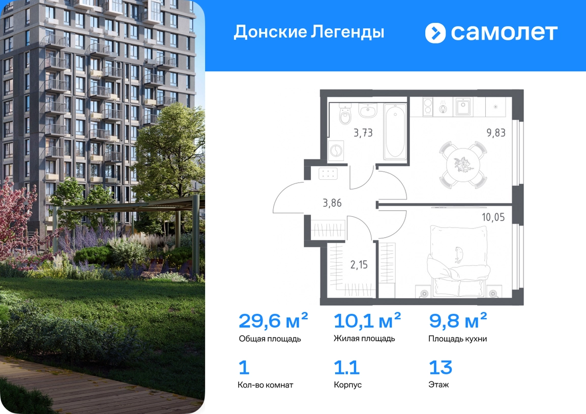 Предлагается 1-комнатная квартира комфорт-класса 29,62 кв.м в корпусе 1.1 на 13 этаже, в ЖК «Донские Легенды» Квартира с предчистовой отделкой. Доступность дополнительных опций уточняйте у застройщика. Приобрести квартиру возможно по специальным акциям от застройщика, с текущими условиями акций можно ознакомиться в блоке «Акций». Цена динамическая и может отличаться, уточняйте актуальность у застройщика. Чувствовать гордость, когда любимая команда забивает гол, и с удовольствием спешить на тренировку по мини-футболу или теннису — так выглядит атмосфера в «Квартале Чехова» в Ленинском районе. Здесь каждый день станет ценным экспонатом в вашей коллекции впечатлений. Проект расположен рядом с Восточным шоссе и улицей Пойменной, всего в 10 минутах на машине от центра города. За 3 минуты вы доберетесь до Ворошиловского моста, а за 4 — до Темерницкого. Если не хотите ехать на машине, рядом остановки автобусов. Поблизости находится спортивный комплекс «Гребной канал Дон», а стадион «Ростов Арена» ждет любителей футбола. Прогуляться по благоустроенной набережной, повеселиться в аквапарке и подкрепиться мороженым можно в Левобережном парке — до него 5 минут на такси. Утро начнется с прогулки с малышом до одного из 3 детских садов. Рядом есть школа для ребят постарше, детская школа искусств, центр культурного развития и ФОК. В квартале откроются поликлиника со станцией скорой помощи и 2 торговых центра. Архитектура квартала сочетает современность и изящество. Элегантные французские балконы и панорамные окна позволят наслаждаться великолепными пейзажами. Во дворе дети играют на площадках, а взрослые занимаются спортом. У жителей будет собственный ипподром для соревнований по конкуру. А еще подземный и многоуровневые паркинги на 7,5 тысячи машино-мест. Входы в подъезды расположены на уровне земли, что удобно для родителей с колясками и путешественников. Для будущих жителей — квартиры без отделки. Можно реализовать любые дизайнерские идеи в своем новом доме.#yan19-2r1813178#О застройщике