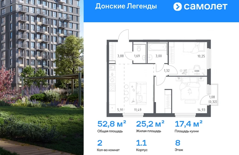 Строим кварталы для жизни с заботой о будущем. Предлагается 2-комнатная квартира комфорт-класса 52,79 кв.м в корпусе 1.1 на 8 этаже, в ЖК «Донские Легенды» Квартира с предчистовой отделкой. Доступность дополнительных опций уточняйте у застройщика. Приобрести квартиру возможно по специальным акциям от застройщика, с текущими условиями акций можно ознакомиться в блоке «Акций». Цена динамическая и может отличаться, уточняйте актуальность у застройщика. Чувствовать гордость, когда любимая команда забивает гол, и с удовольствием спешить на тренировку по мини-футболу или теннису — так выглядит атмосфера в «Квартале Чехова» в Ленинском районе. Здесь каждый день станет ценным экспонатом в вашей коллекции впечатлений. Проект расположен рядом с Восточным шоссе и улицей Пойменной, всего в 10 минутах на машине от центра города. За 3 минуты вы доберетесь до Ворошиловского моста, а за 4 — до Темерницкого. Если не хотите ехать на машине, рядом остановки автобусов. Поблизости находится спортивный комплекс «Гребной канал Дон», а стадион «Ростов Арена» ждет любителей футбола. Прогуляться по благоустроенной набережной, повеселиться в аквапарке и подкрепиться мороженым можно в Левобережном парке — до него 5 минут на такси. Утро начнется с прогулки с малышом до одного из 3 детских садов. Рядом есть школа для ребят постарше, детская школа искусств, центр культурного развития и ФОК. В квартале откроются поликлиника со станцией скорой помощи и 2 торговых центра. Архитектура квартала сочетает современность и изящество. Элегантные французские балконы и панорамные окна позволят наслаждаться великолепными пейзажами. Во дворе дети играют на площадках, а взрослые занимаются спортом. У жителей будет собственный ипподром для соревнований по конкуру. А еще подземный и многоуровневые паркинги на 7,5 тысячи машино-мест. Входы в подъезды расположены на уровне земли, что удобно для родителей с колясками и путешественников. Для будущих жителей — квартиры без отделки. Можно реализовать любые дизайнерские идеи в своем новом доме.#yan19-2r1819634#О застройщике