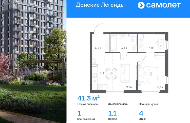 Строим кварталы для жизни с заботой о будущем. Предлагается 1-комнатная квартира комфорт-класса 41,27 кв.м в корпусе 1.1 на 4 этаже, в ЖК «Донские Легенды» Квартира с предчистовой отделкой. Доступность дополнительных опций уточняйте у застройщика. Приобрести квартиру возможно по специальным акциям от застройщика, с текущими условиями акций можно ознакомиться в блоке «Акций». Цена динамическая и может отличаться, уточняйте актуальность у застройщика. Чувствовать гордость, когда любимая команда забивает гол, и с удовольствием спешить на тренировку по мини-футболу или теннису — так выглядит атмосфера в «Квартале Чехова» в Ленинском районе. Здесь каждый день станет ценным экспонатом в вашей коллекции впечатлений. Проект расположен рядом с Восточным шоссе и улицей Пойменной, всего в 10 минутах на машине от центра города. За 3 минуты вы доберетесь до Ворошиловского моста, а за 4 — до Темерницкого. Если не хотите ехать на машине, рядом остановки автобусов. Поблизости находится спортивный комплекс «Гребной канал Дон», а стадион «Ростов Арена» ждет любителей футбола. Прогуляться по благоустроенной набережной, повеселиться в аквапарке и подкрепиться мороженым можно в Левобережном парке — до него 5 минут на такси. Утро начнется с прогулки с малышом до одного из 3 детских садов. Рядом есть школа для ребят постарше, детская школа искусств, центр культурного развития и ФОК. В квартале откроются поликлиника со станцией скорой помощи и 2 торговых центра. Архитектура квартала сочетает современность и изящество. Элегантные французские балконы и панорамные окна позволят наслаждаться великолепными пейзажами. Во дворе дети играют на площадках, а взрослые занимаются спортом. У жителей будет собственный ипподром для соревнований по конкуру. А еще подземный и многоуровневые паркинги на 7,5 тысячи машино-мест. Входы в подъезды расположены на уровне земли, что удобно для родителей с колясками и путешественников. Для будущих жителей — квартиры без отделки. Можно реализовать любые дизайнерские идеи в своем новом доме.#yan19-2r1822424#О застройщике