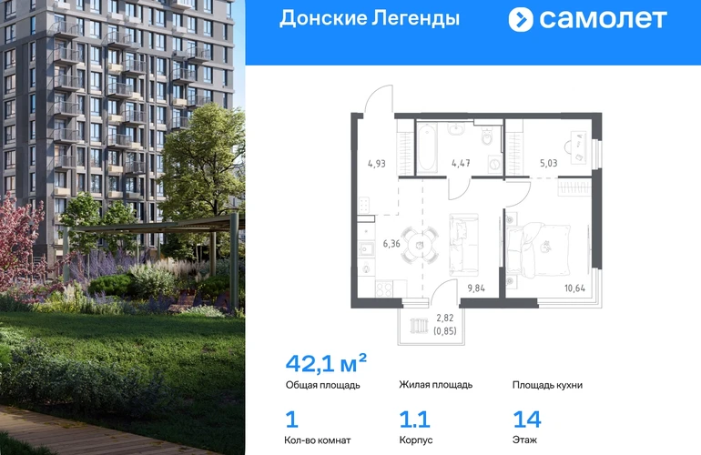 Строим кварталы для жизни с заботой о будущем. Предлагается 1-комнатная квартира комфорт-класса 42,12 кв.м в корпусе 1.1 на 14 этаже, в ЖК «Донские Легенды» Квартира с предчистовой отделкой. Доступность дополнительных опций уточняйте у застройщика. Приобрести квартиру возможно по специальным акциям от застройщика, с текущими условиями акций можно ознакомиться в блоке «Акций». Цена динамическая и может отличаться, уточняйте актуальность у застройщика. Чувствовать гордость, когда любимая команда забивает гол, и с удовольствием спешить на тренировку по мини-футболу или теннису — так выглядит атмосфера в «Квартале Чехова» в Ленинском районе. Здесь каждый день станет ценным экспонатом в вашей коллекции впечатлений. Проект расположен рядом с Восточным шоссе и улицей Пойменной, всего в 10 минутах на машине от центра города. За 3 минуты вы доберетесь до Ворошиловского моста, а за 4 — до Темерницкого. Если не хотите ехать на машине, рядом остановки автобусов. Поблизости находится спортивный комплекс «Гребной канал Дон», а стадион «Ростов Арена» ждет любителей футбола. Прогуляться по благоустроенной набережной, повеселиться в аквапарке и подкрепиться мороженым можно в Левобережном парке — до него 5 минут на такси. Утро начнется с прогулки с малышом до одного из 3 детских садов. Рядом есть школа для ребят постарше, детская школа искусств, центр культурного развития и ФОК. В квартале откроются поликлиника со станцией скорой помощи и 2 торговых центра. Архитектура квартала сочетает современность и изящество. Элегантные французские балконы и панорамные окна позволят наслаждаться великолепными пейзажами. Во дворе дети играют на площадках, а взрослые занимаются спортом. У жителей будет собственный ипподром для соревнований по конкуру. А еще подземный и многоуровневые паркинги на 7,5 тысячи машино-мест. Входы в подъезды расположены на уровне земли, что удобно для родителей с колясками и путешественников. Для будущих жителей — квартиры без отделки. Можно реализовать любые дизайнерские идеи в своем новом доме.#yan19-2r1822431#О застройщике