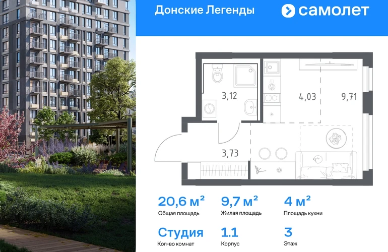 Строим кварталы для жизни с заботой о будущем. Предлагается квартира студия комфорт-класса 20,59 кв.м в корпусе 1.1 на 3 этаже, в ЖК «Донские Легенды» Квартира с предчистовой отделкой. Доступность дополнительных опций уточняйте у застройщика. Приобрести квартиру возможно по специальным акциям от застройщика, с текущими условиями акций можно ознакомиться в блоке «Акций». Цена динамическая и может отличаться, уточняйте актуальность у застройщика. Чувствовать гордость, когда любимая команда забивает гол, и с удовольствием спешить на тренировку по мини-футболу или теннису — так выглядит атмосфера в «Квартале Чехова» в Ленинском районе. Здесь каждый день станет ценным экспонатом в вашей коллекции впечатлений. Проект расположен рядом с Восточным шоссе и улицей Пойменной, всего в 10 минутах на машине от центра города. За 3 минуты вы доберетесь до Ворошиловского моста, а за 4 — до Темерницкого. Если не хотите ехать на машине, рядом остановки автобусов. Поблизости находится спортивный комплекс «Гребной канал Дон», а стадион «Ростов Арена» ждет любителей футбола. Прогуляться по благоустроенной набережной, повеселиться в аквапарке и подкрепиться мороженым можно в Левобережном парке — до него 5 минут на такси. Утро начнется с прогулки с малышом до одного из 3 детских садов. Рядом есть школа для ребят постарше, детская школа искусств, центр культурного развития и ФОК. В квартале откроются поликлиника со станцией скорой помощи и 2 торговых центра. Архитектура квартала сочетает современность и изящество. Элегантные французские балконы и панорамные окна позволят наслаждаться великолепными пейзажами. Во дворе дети играют на площадках, а взрослые занимаются спортом. У жителей будет собственный ипподром для соревнований по конкуру. А еще подземный и многоуровневые паркинги на 7,5 тысячи машино-мест. Входы в подъезды расположены на уровне земли, что удобно для родителей с колясками и путешественников. Для будущих жителей — квартиры без отделки. Можно реализовать любые дизайнерские идеи в своем новом доме.#yan19-2r1822437#О застройщике
