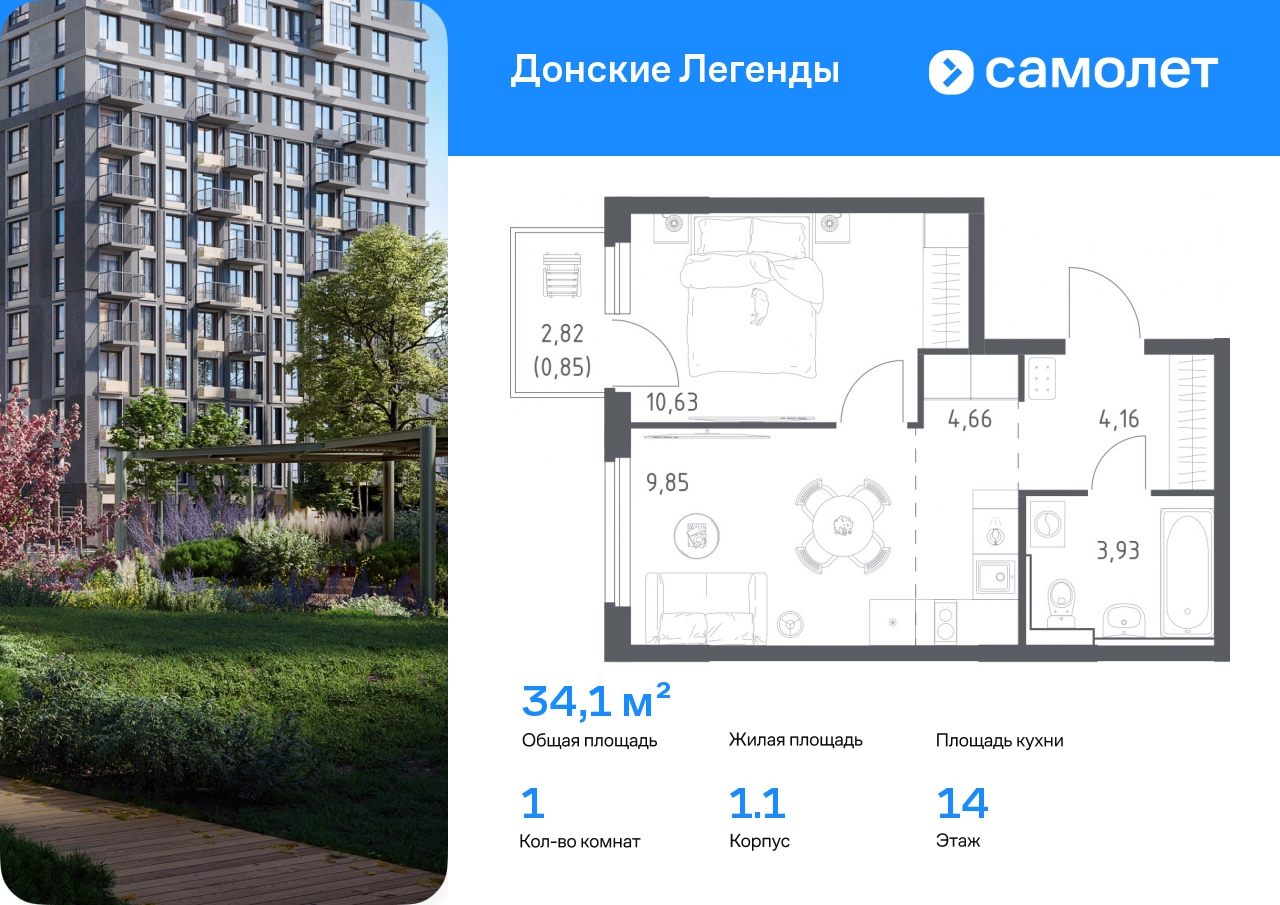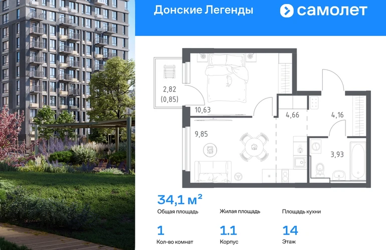 Строим кварталы для жизни с заботой о будущем. Предлагается 1-комнатная квартира комфорт-класса 34,08 кв.м в корпусе 1.1 на 14 этаже, в ЖК «Донские Легенды» Квартира с предчистовой отделкой. Доступность дополнительных опций уточняйте у застройщика. Приобрести квартиру возможно по специальным акциям от застройщика, с текущими условиями акций можно ознакомиться в блоке «Акций». Цена динамическая и может отличаться, уточняйте актуальность у застройщика. Чувствовать гордость, когда любимая команда забивает гол, и с удовольствием спешить на тренировку по мини-футболу или теннису — так выглядит атмосфера в «Квартале Чехова» в Ленинском районе. Здесь каждый день станет ценным экспонатом в вашей коллекции впечатлений. Проект расположен рядом с Восточным шоссе и улицей Пойменной, всего в 10 минутах на машине от центра города. За 3 минуты вы доберетесь до Ворошиловского моста, а за 4 — до Темерницкого. Если не хотите ехать на машине, рядом остановки автобусов. Поблизости находится спортивный комплекс «Гребной канал Дон», а стадион «Ростов Арена» ждет любителей футбола. Прогуляться по благоустроенной набережной, повеселиться в аквапарке и подкрепиться мороженым можно в Левобережном парке — до него 5 минут на такси. Утро начнется с прогулки с малышом до одного из 3 детских садов. Рядом есть школа для ребят постарше, детская школа искусств, центр культурного развития и ФОК. В квартале откроются поликлиника со станцией скорой помощи и 2 торговых центра. Архитектура квартала сочетает современность и изящество. Элегантные французские балконы и панорамные окна позволят наслаждаться великолепными пейзажами. Во дворе дети играют на площадках, а взрослые занимаются спортом. У жителей будет собственный ипподром для соревнований по конкуру. А еще подземный и многоуровневые паркинги на 7,5 тысячи машино-мест. Входы в подъезды расположены на уровне земли, что удобно для родителей с колясками и путешественников. Для будущих жителей — квартиры без отделки. Можно реализовать любые дизайнерские идеи в своем новом доме.#yan19-2r1822847#О застройщике
